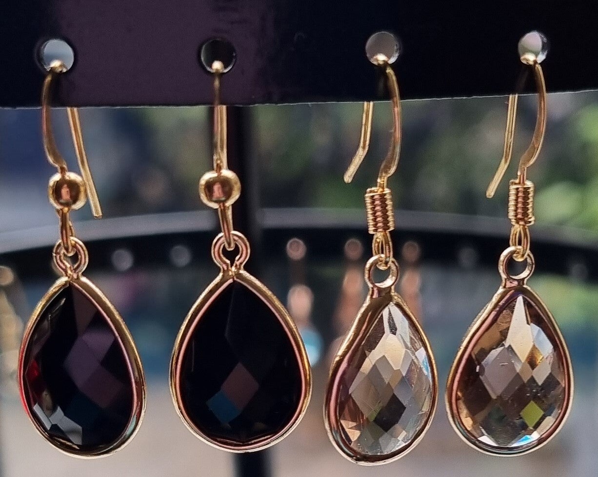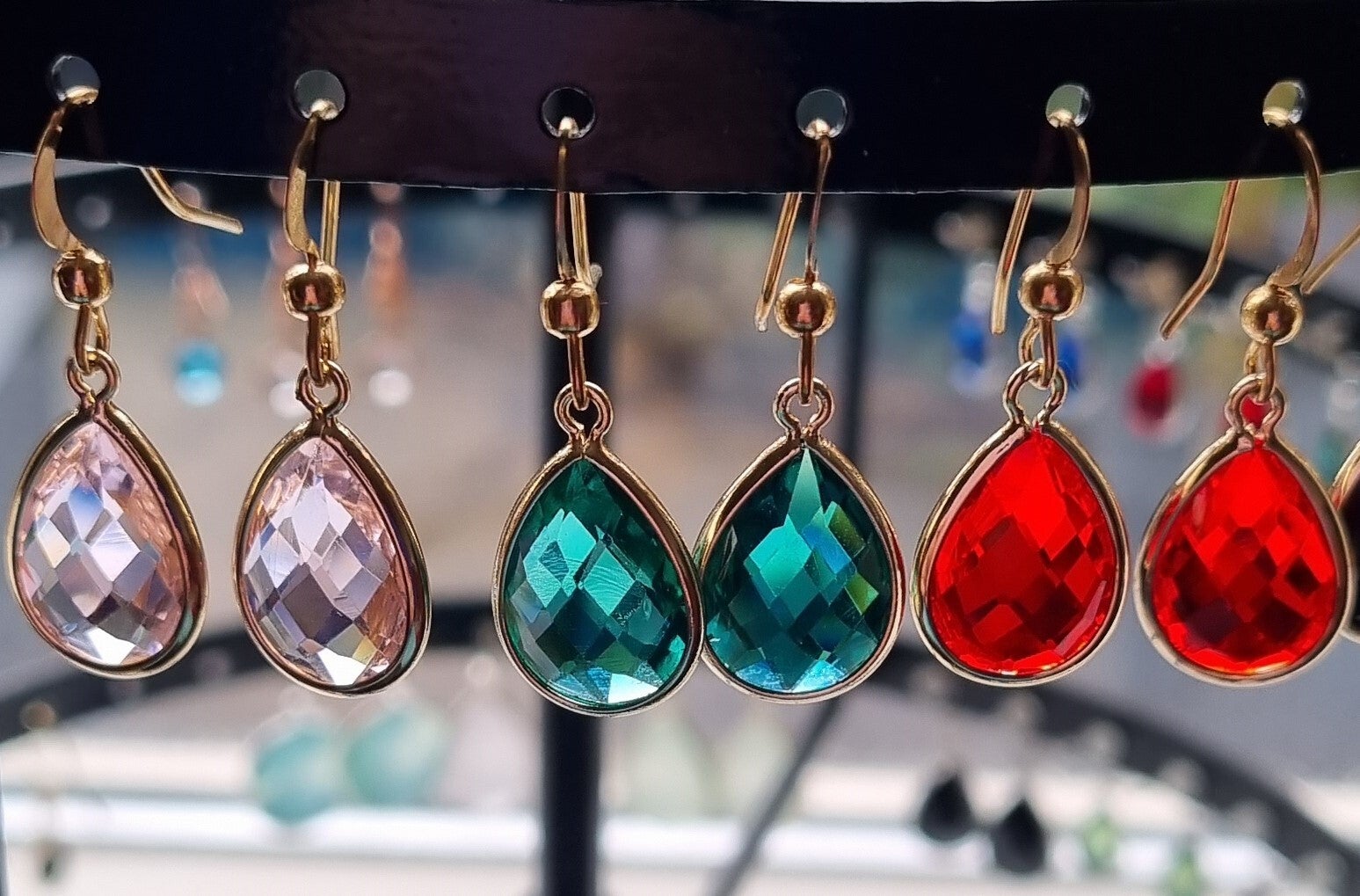 Prachtige goldplated oorbellen druppel van Tsjechisch facet in diverse kleuren, aqua, geel, lila, roze, smaragdgroen, rood, groen, koningsblauw, doorschijnend, zwart, bruin. De rode kleur is minder fel dan op de foto. Het is een warmere tint, dieper rood. Wil je graag een andere hanger of knopje, neem dan contact op. Oorbel is 15 x 10 mm