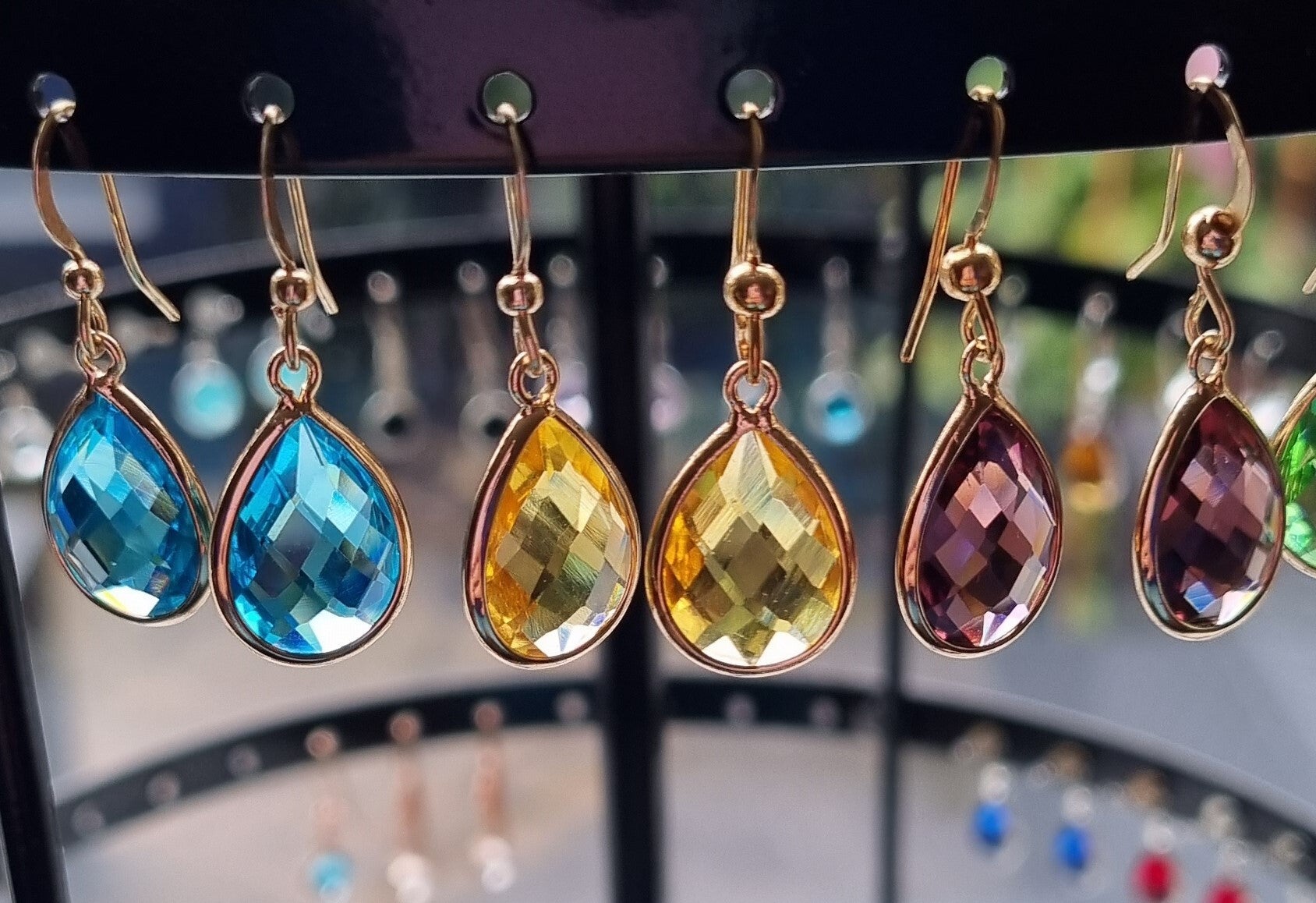 Goldplated oorbellen druppel van Tsjechisch facet in diverse kleuren