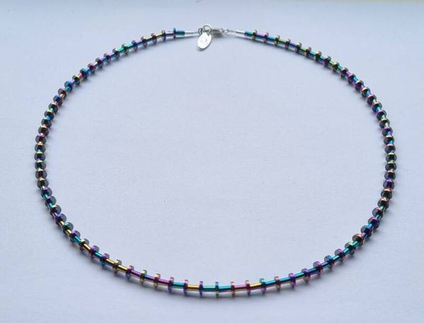 Prachtige hematiet ketting luxe fijn met zilveren sluiting en verlengkettinkje.