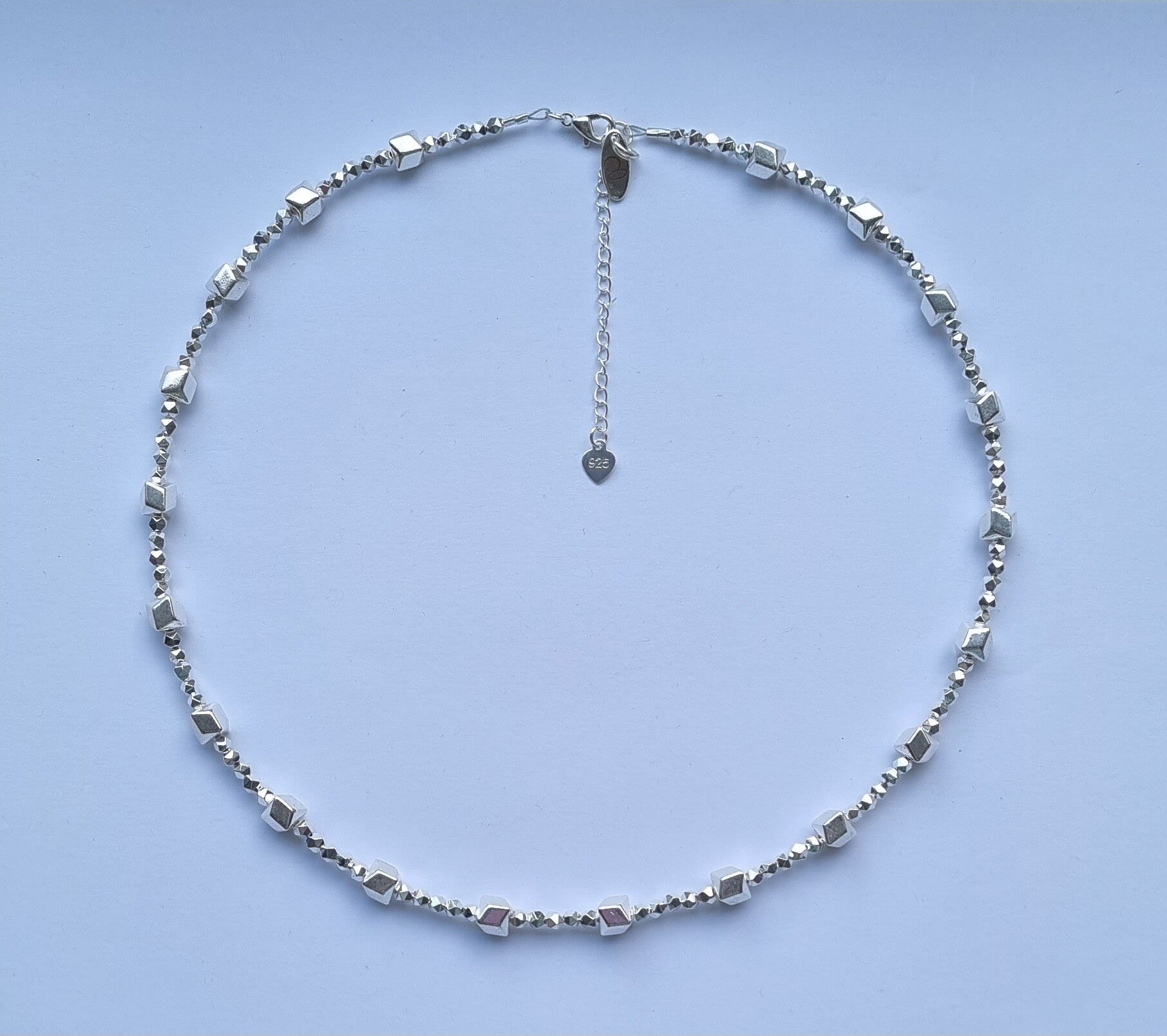 Prachtige verzilverde hematiet ketting fijn met zilveren sluiting (925) en verlengkettinkje.