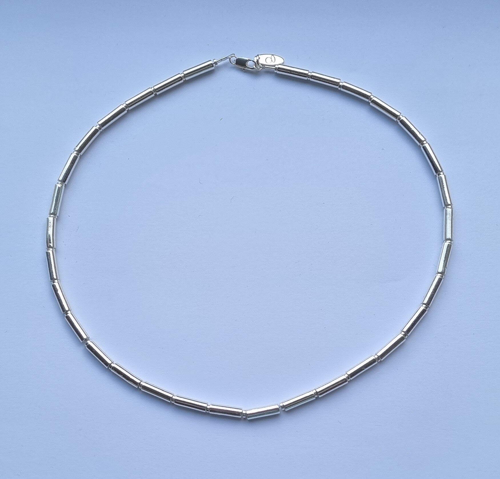 Prachtige verzilverde hematiet ketting staafjes met zilveren sluiting (925) met verlengkettinkje.