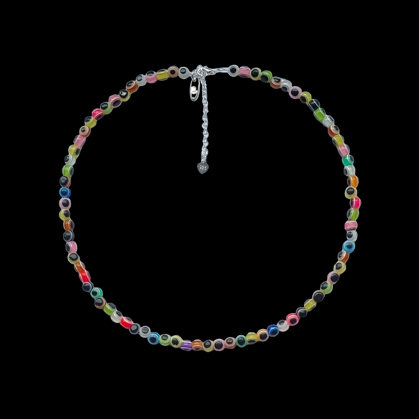 Prachtige mini bolletjesketting kleurrijk met zilveren sluiting (925) met verlengkettinkje.