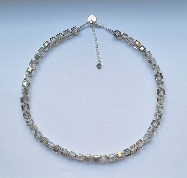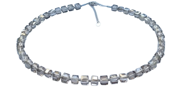 Prachtige blokjesketting facet grijs met prachtige glans afgewerkt met zilveren sluiting (925) en verlengkettinkje.