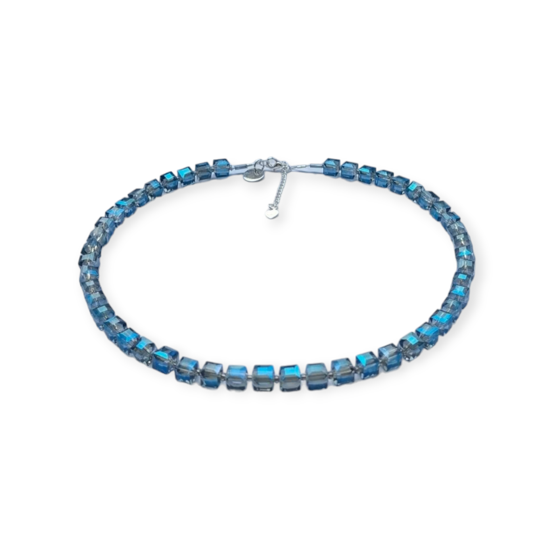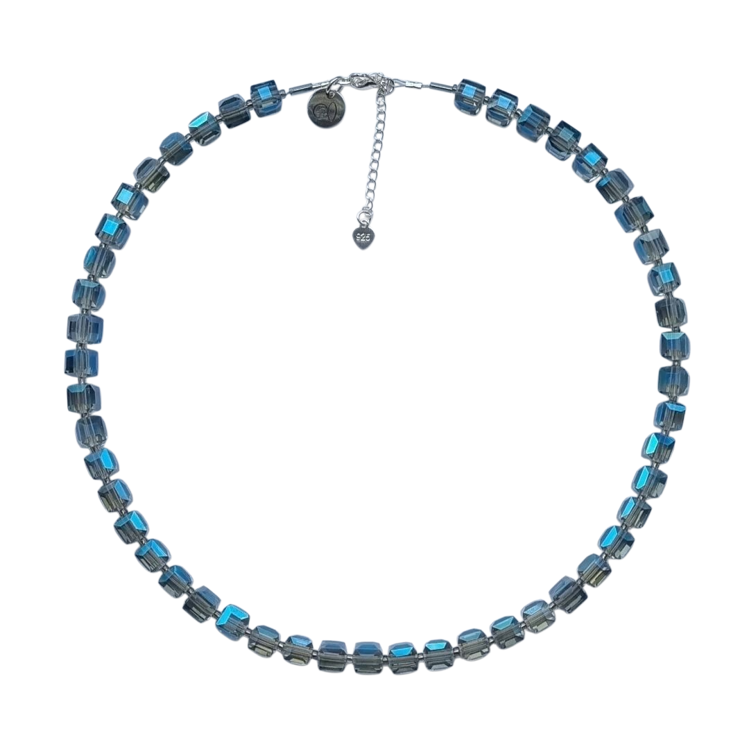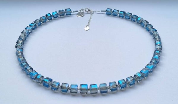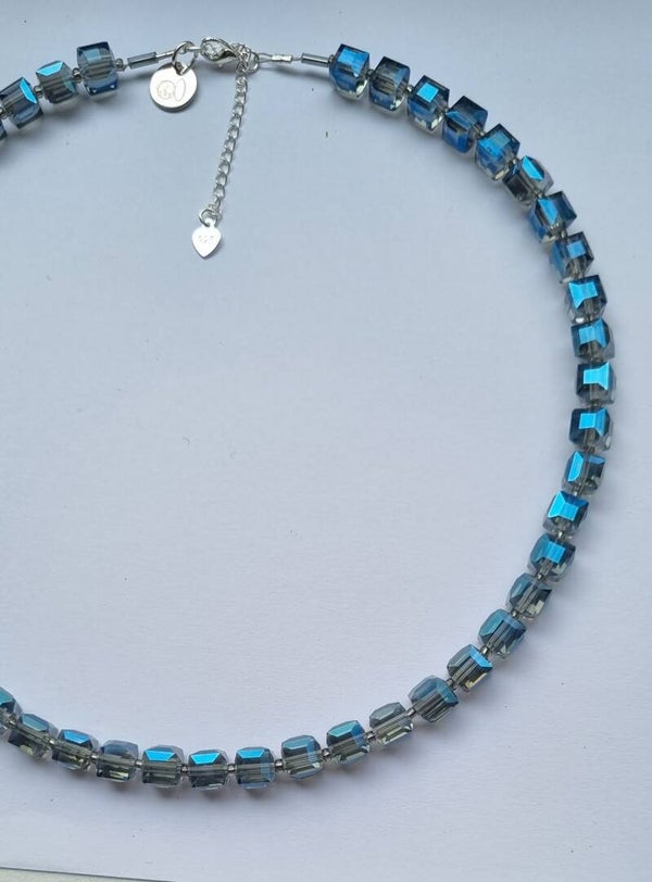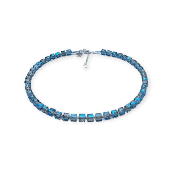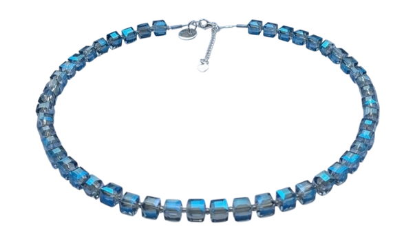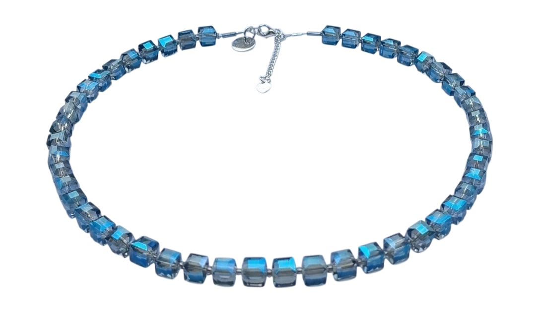 Prachtige blokjesketting facet blauw met prachtige glans met zilveren sluiting (925) met verlengkettinkje.