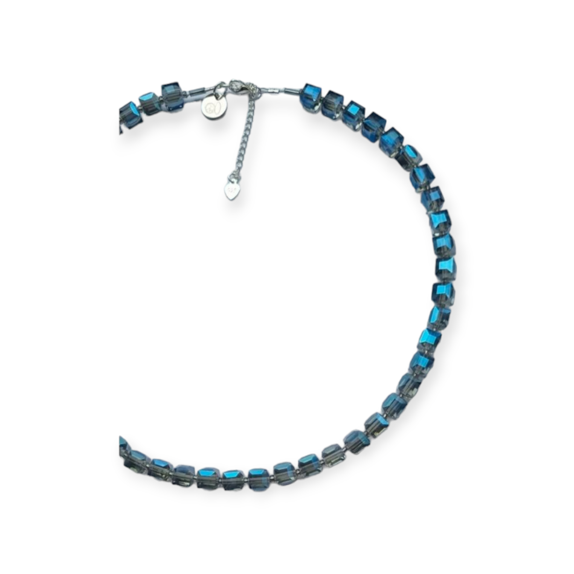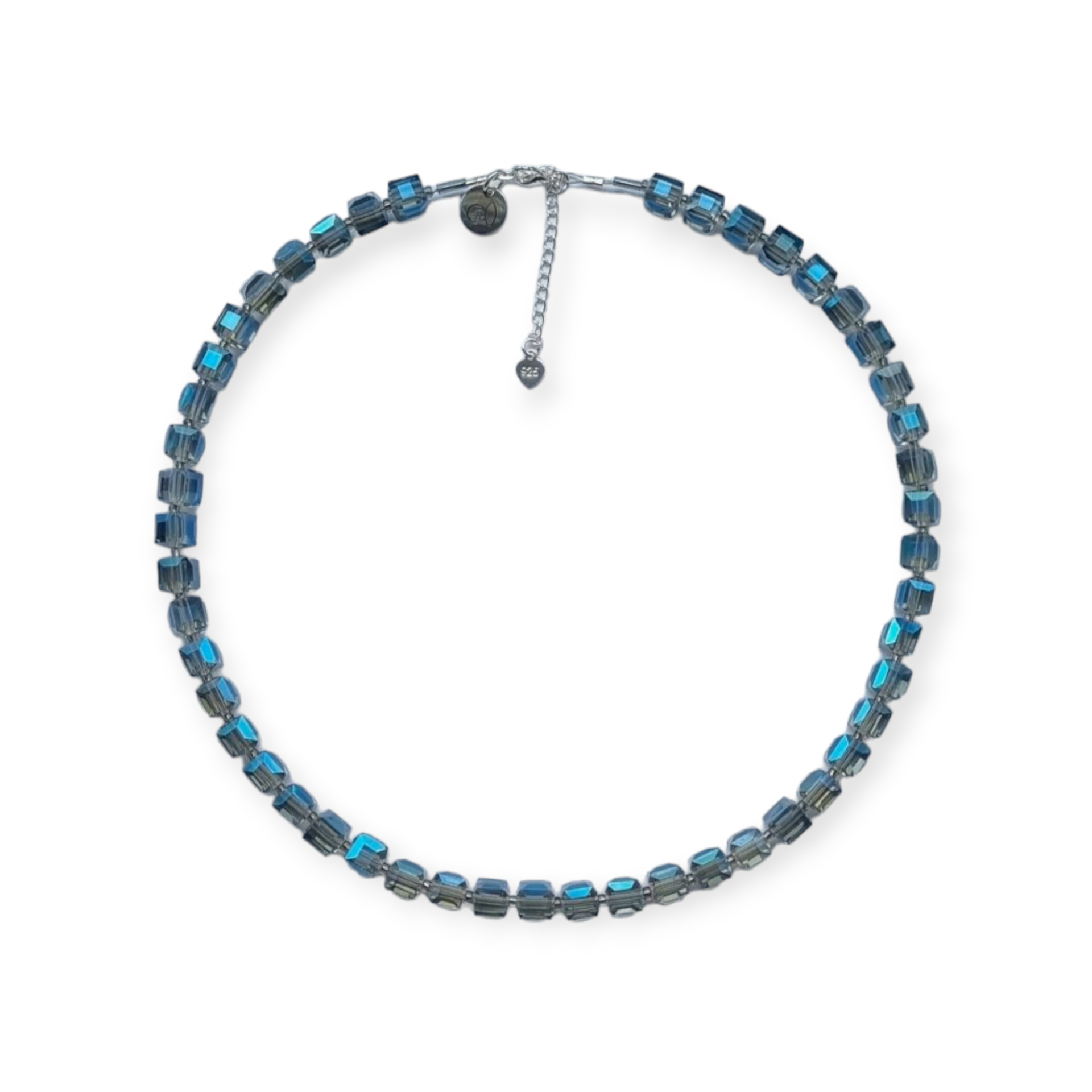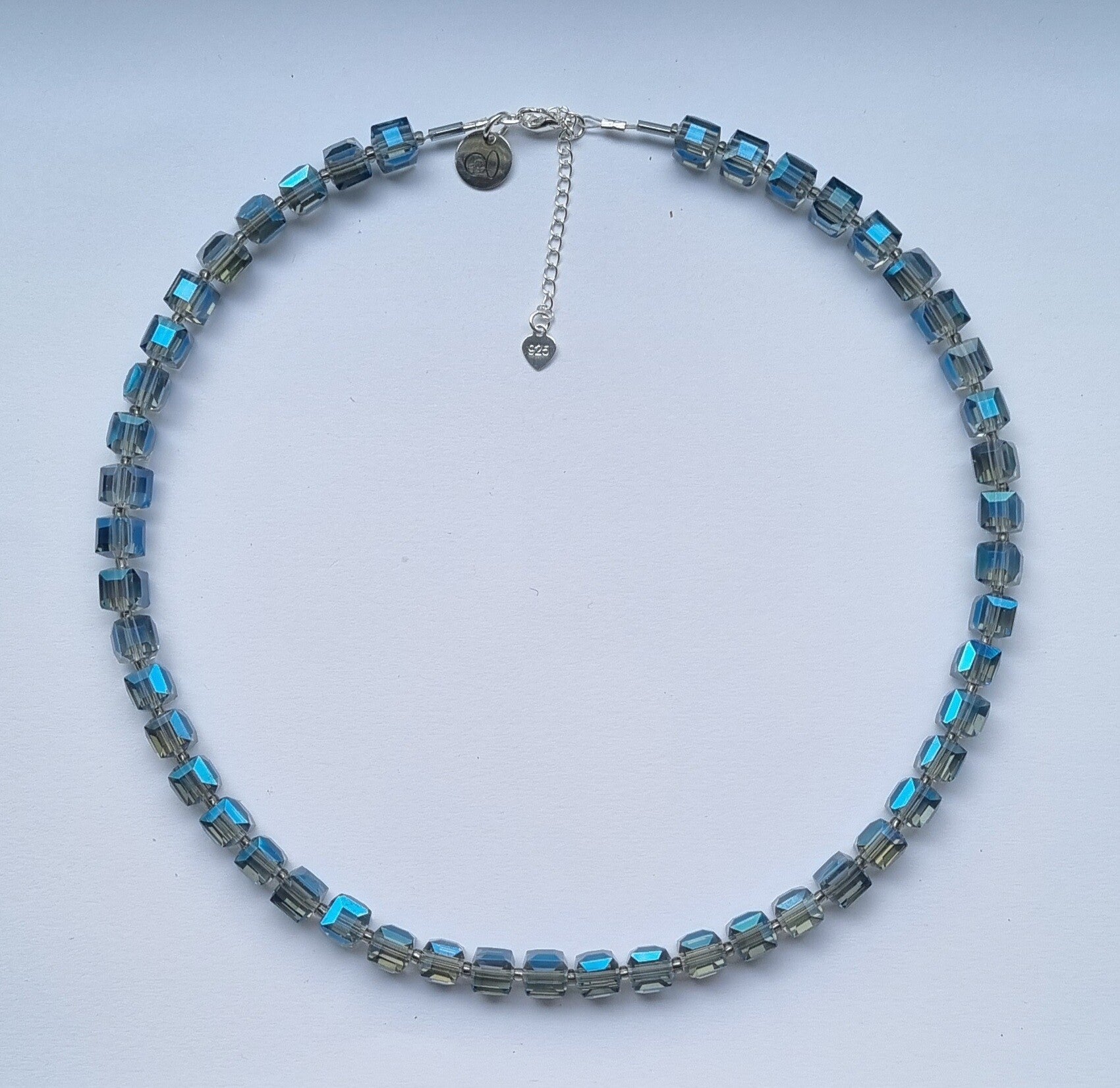 Prachtige blokjesketting facet blauw met prachtige glans met zilveren sluiting (925) met verlengkettinkje.