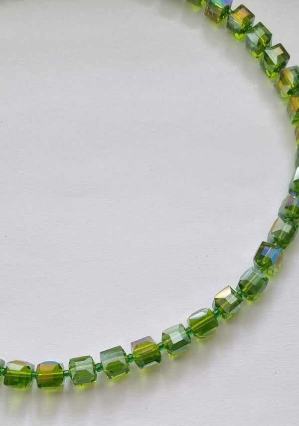 Prachtige blokjesketting facet groen met zilveren (925) kapittelsluiting. 19