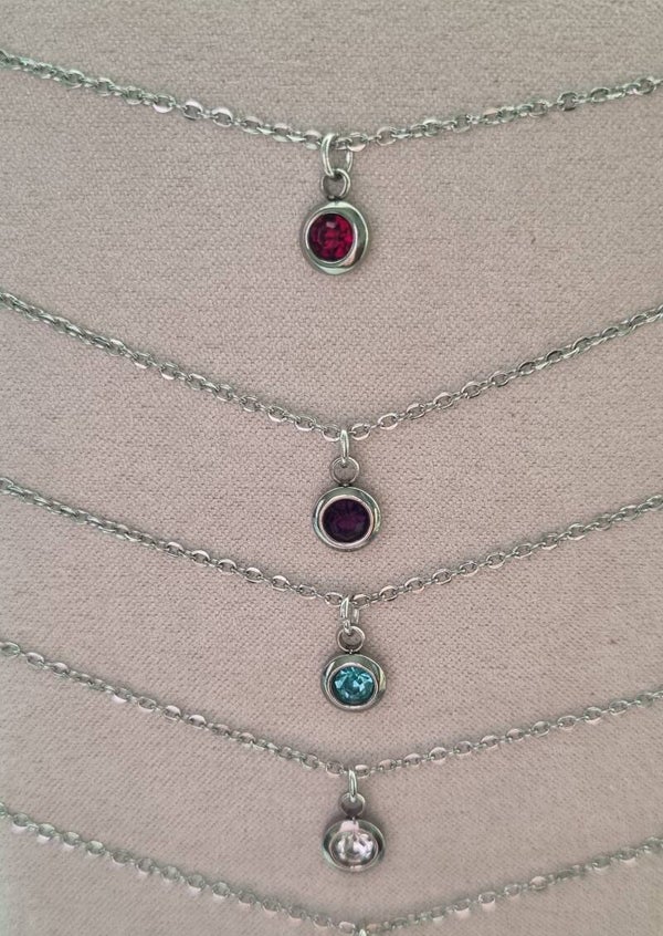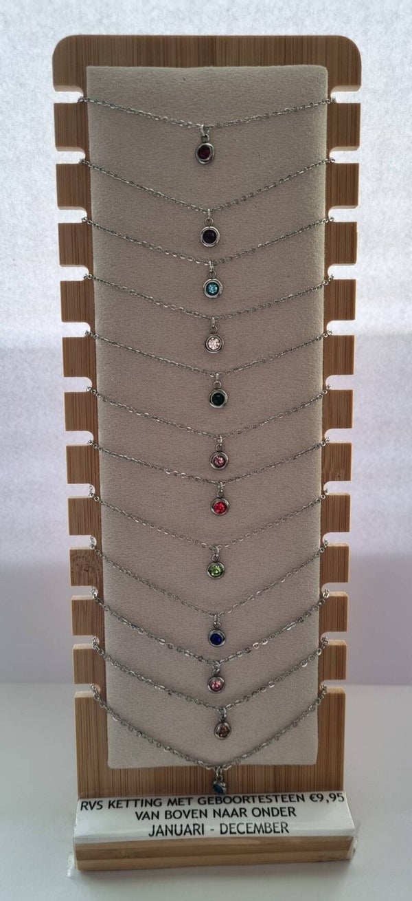Prachtig fijn kettinkje met geboortesteen. Verkrijgbaar in goudkleurige en zilverkleurige rvs kettinkjes. Lengte kettinkje ca. 50 cm met verlengkettinkje. Leuk te combineren met een verstelbaar armbandje met geboortjesteen. Leuk als cadeau voor Valentijnsdag of Moederdag.