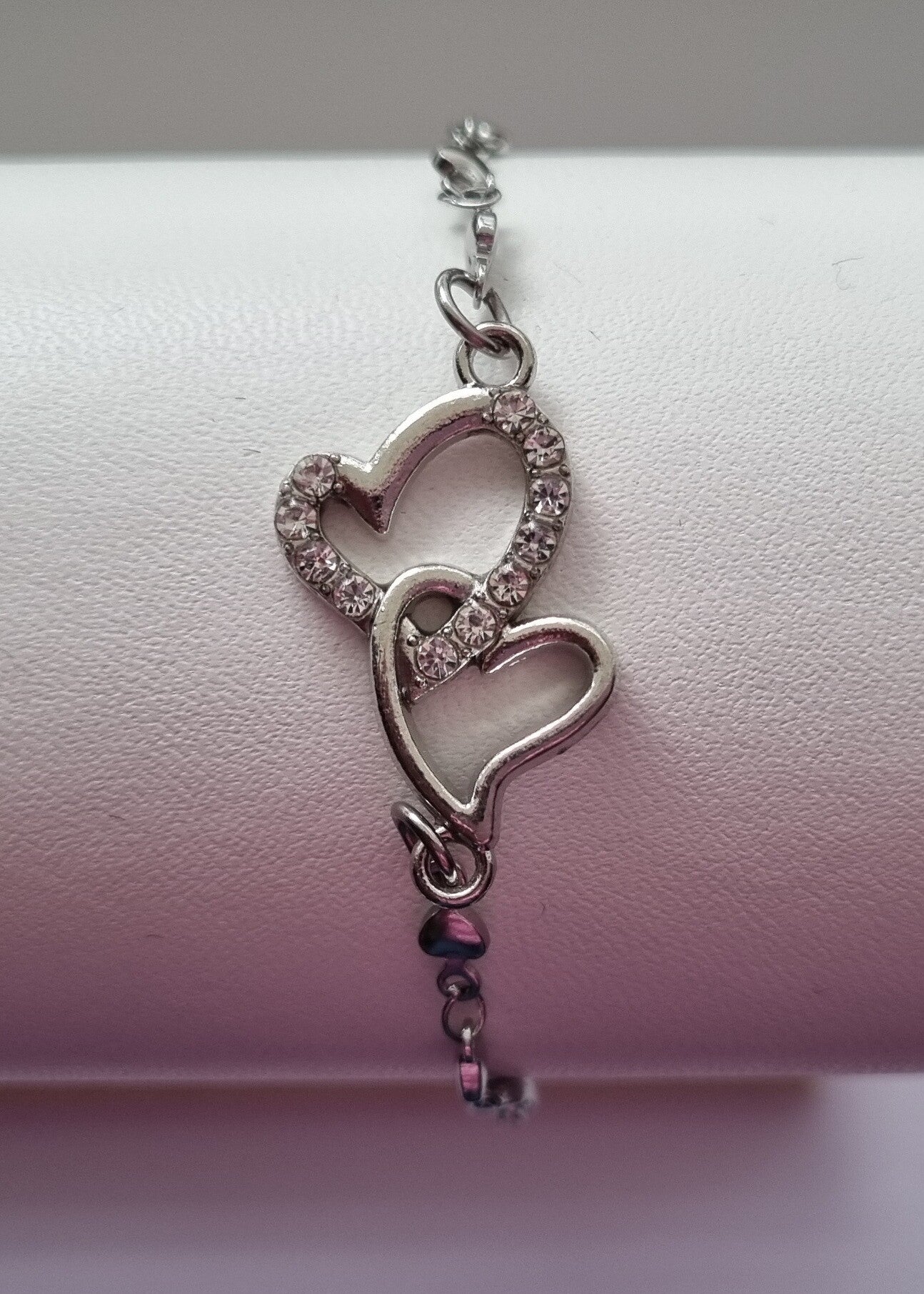 Hartjesarmbandje rvs love met strass. 2 harten door elkaar heen in rvs zilver of goudkleur. Armandje is inclusief verlengkettinkje. Materiaal rvs. Leuk als cadeau voor Valentijn - of Moederdag.