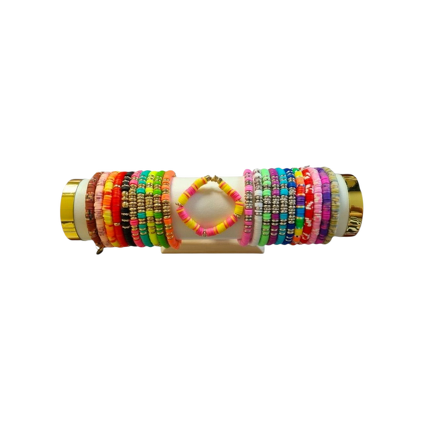 Prachtige elastische Polymeerklei armbanden lengte 18-20 cm, kraal 6 mm.