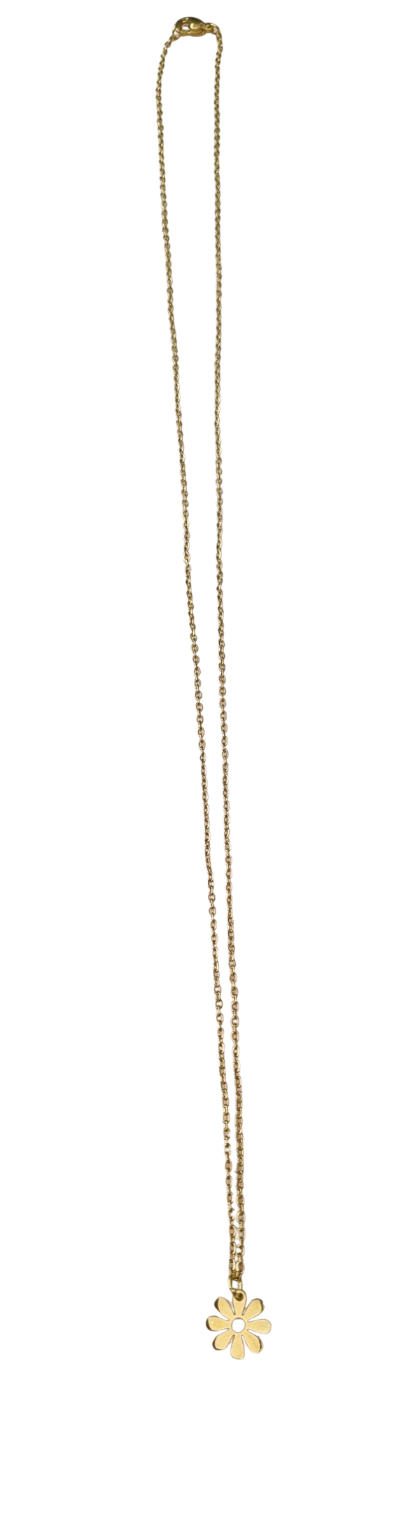 Prachtig fijn kettinkje rvs goud Bloem, met rvs bedel. Lengte kettinkje 60 cm. Is in te korten. Materiaal stainless steel/rvs.