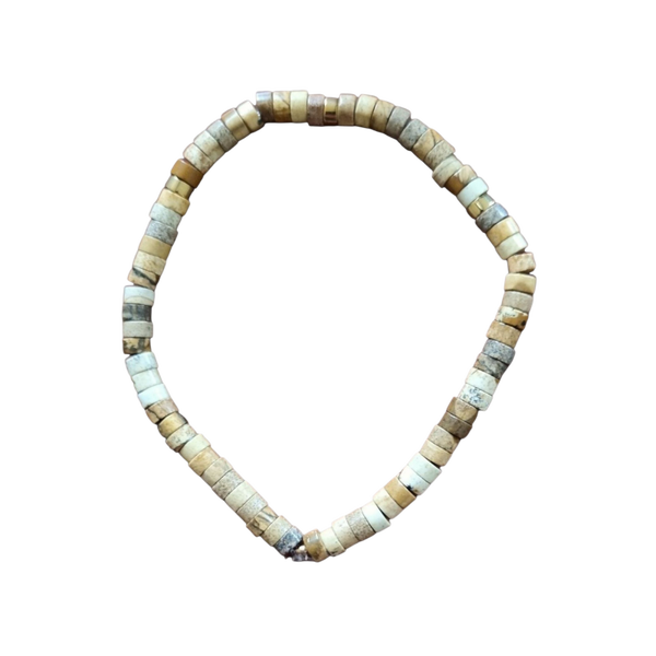 Prachtige Jaspis armband op elastiek in prachtige kleuren met goudkleurige hematiet accenten. Lengte armband ca. 19 cm, dikte 4 mm.