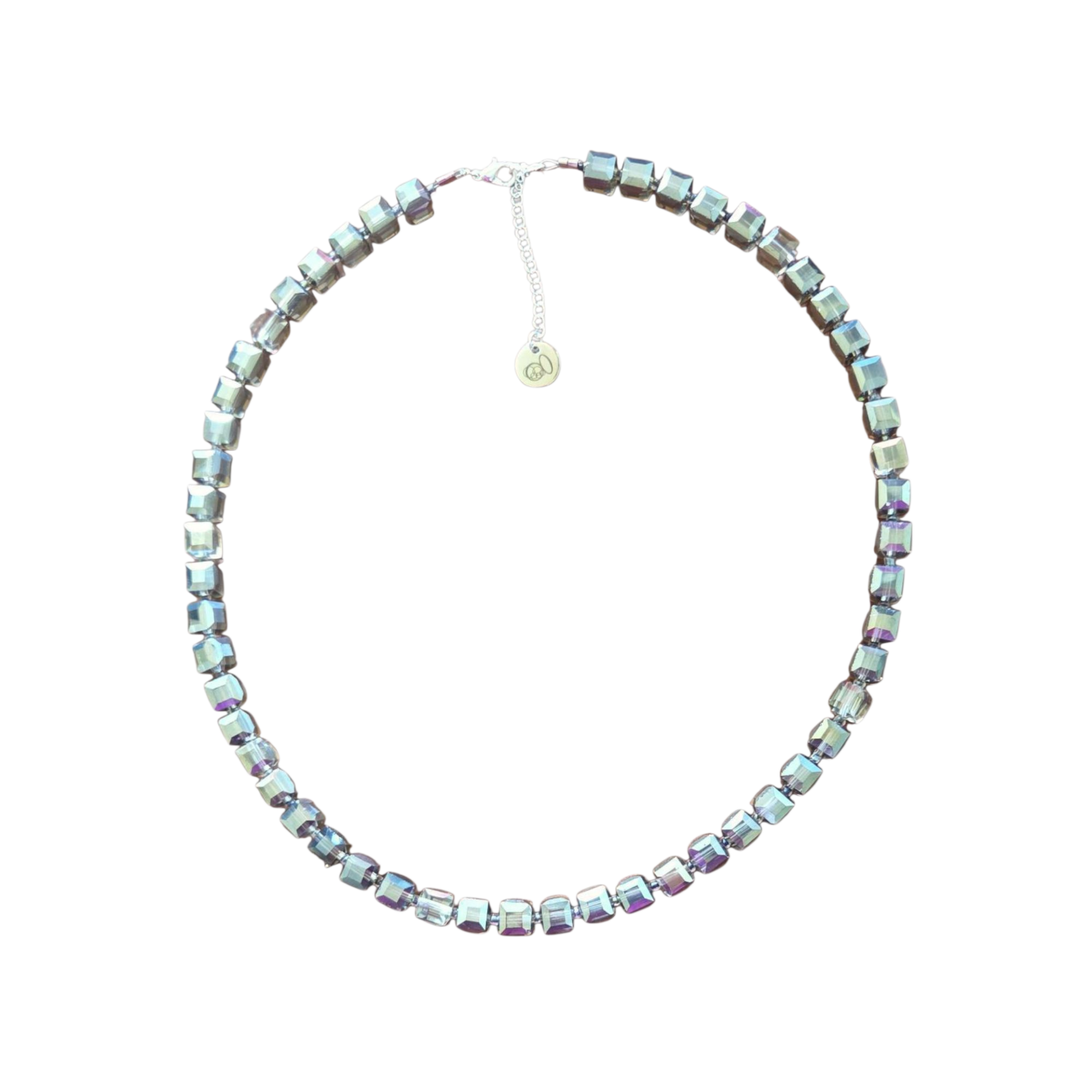 Prachtige blokjesketting zilverkleur met prachtige glans afgewerkt met zilveren sluiting (925) en verlengkettinkje.