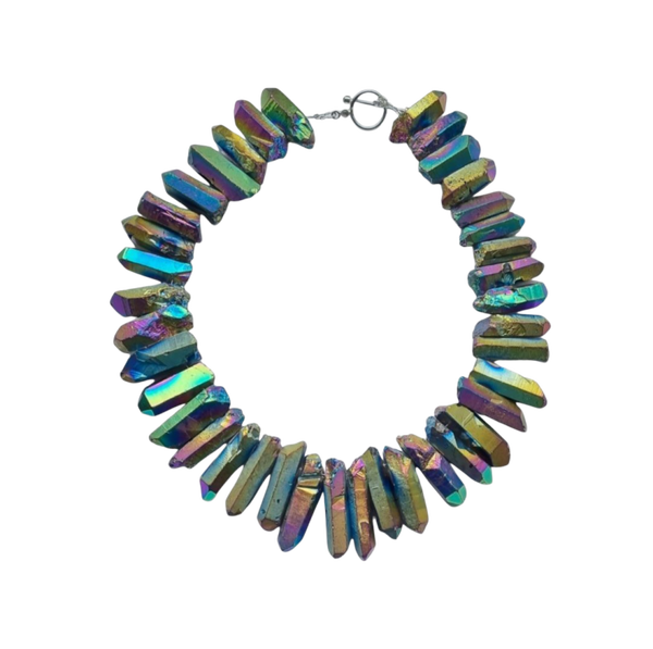 Prachtige luxe ketting van titanium kwarts, staat schitterend in de hals.