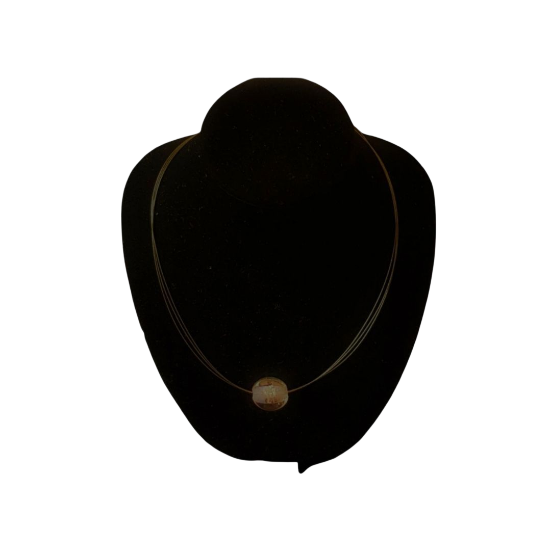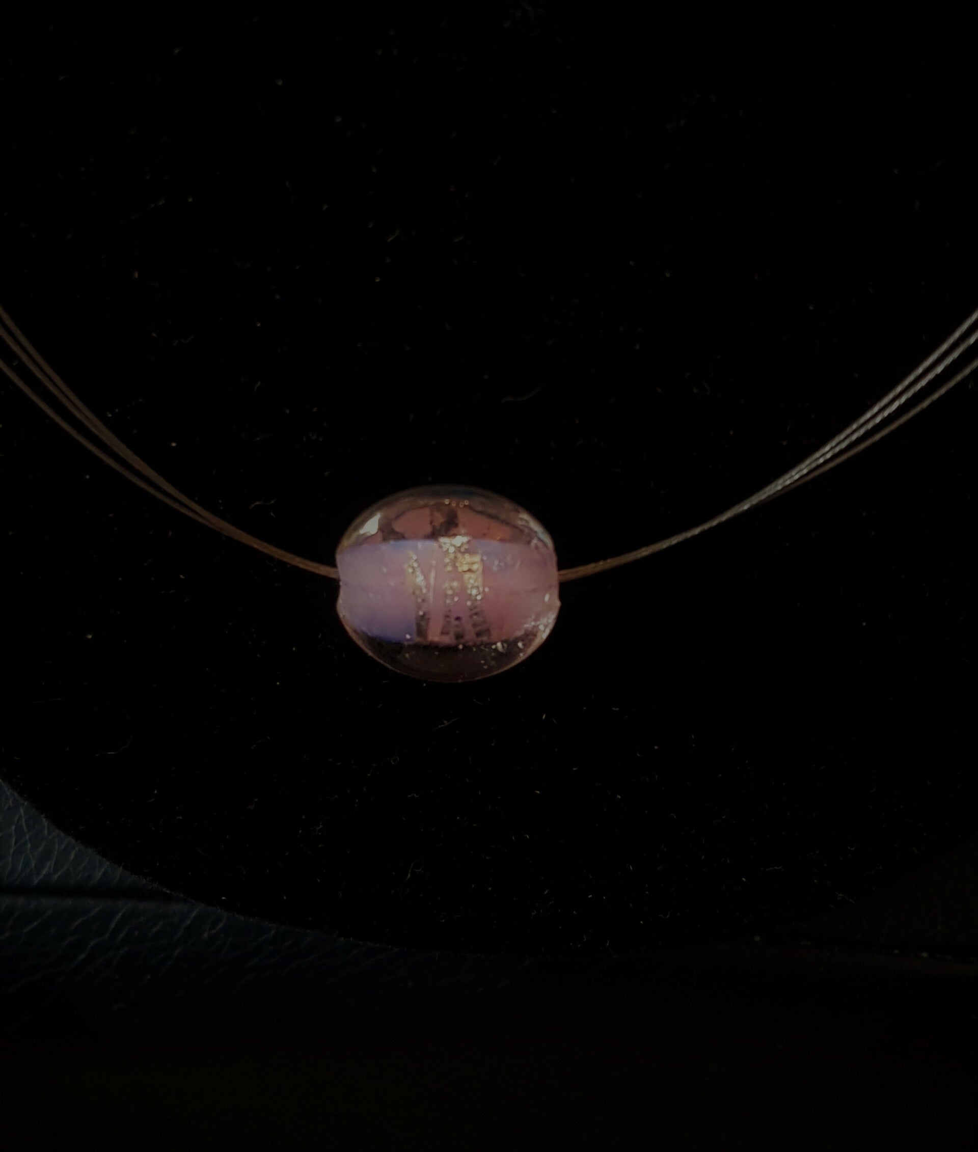 Prachtige ketting met glazen roze zilverfolie kraal. Is uitverkocht, maar kan besteld worden.