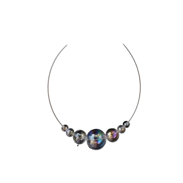 Prachtige spang met glazen ballen met regenboog glans.