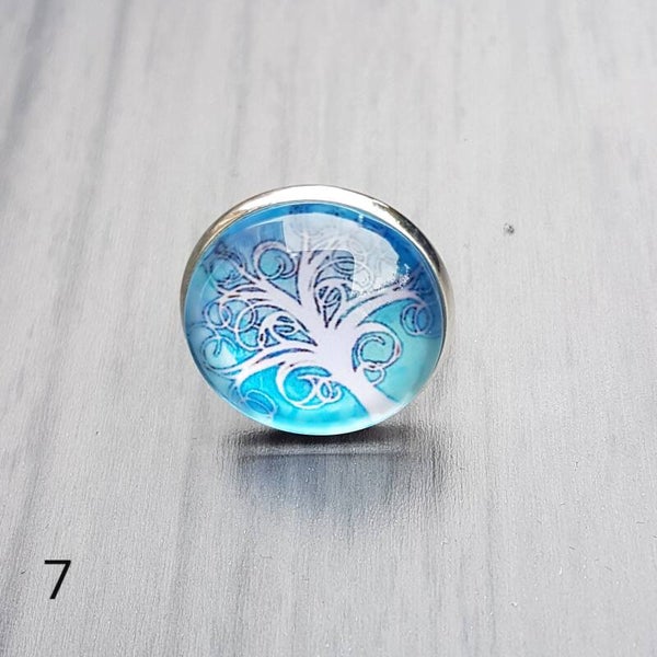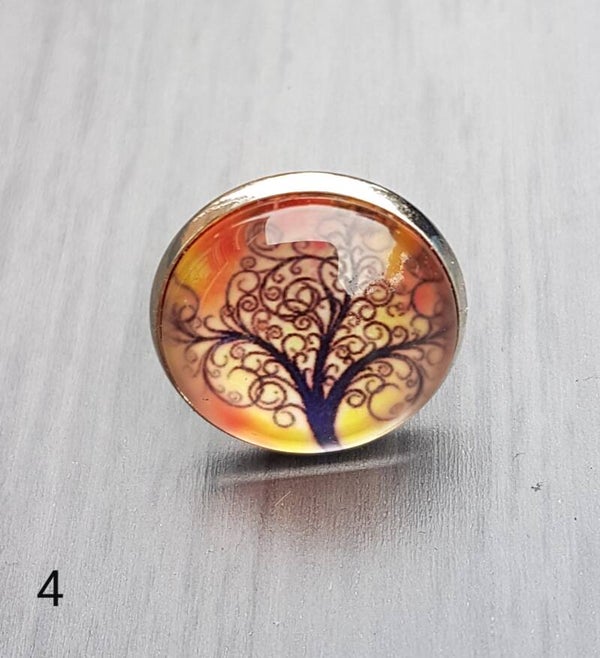 Prachtige ring met cabochon 2O mm afbeelding levensboom. Diverse kleuren