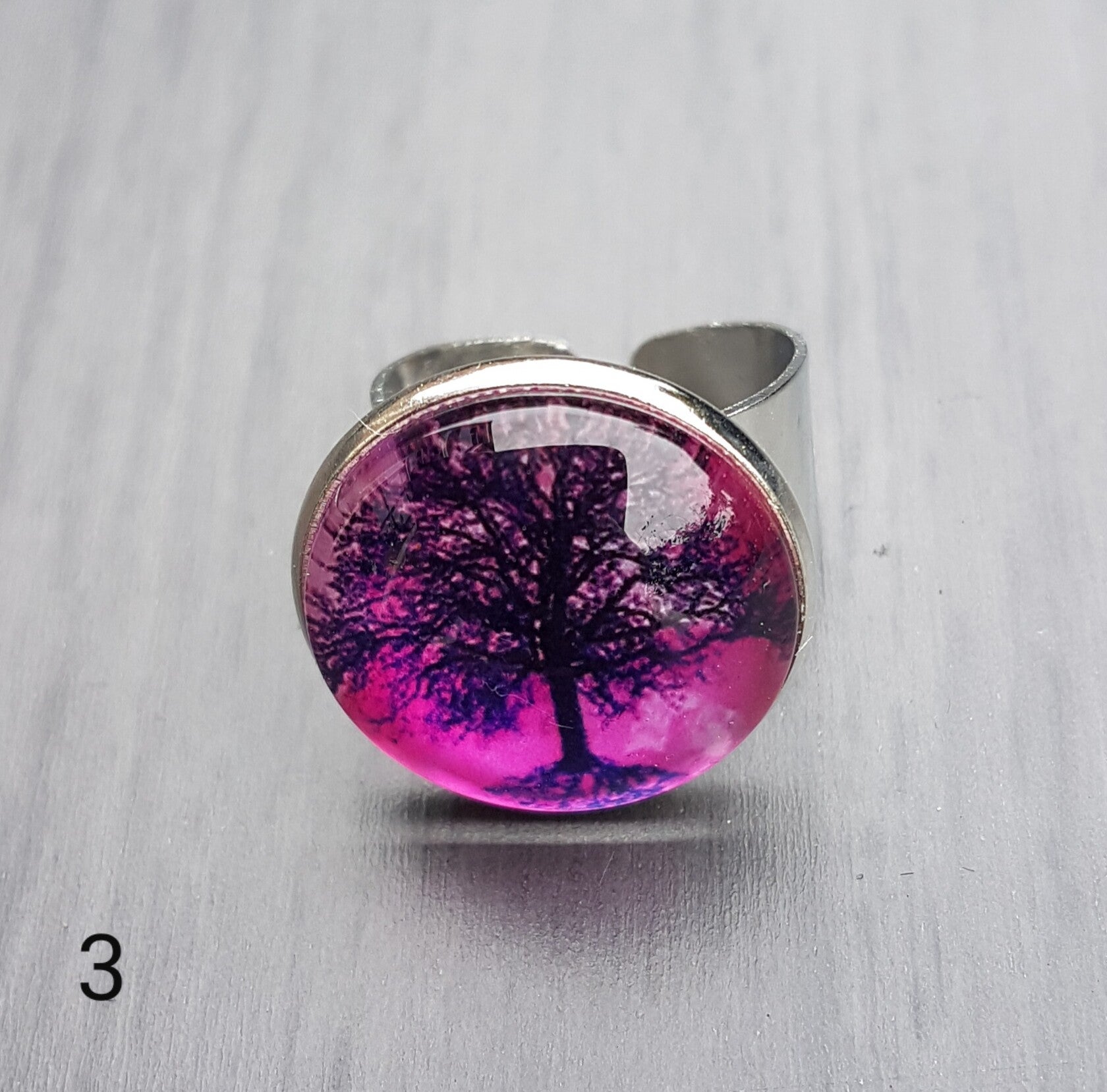 Prachtige rvs ring verstelbaar met cabochon 20 mm met afbeelding van levensboom.