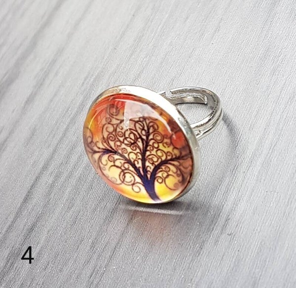 Prachtige ring rvs verstelbaar met cabochon 20 mm met afbeelding levensboom.