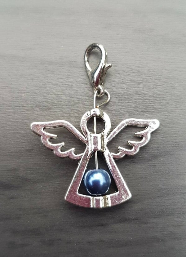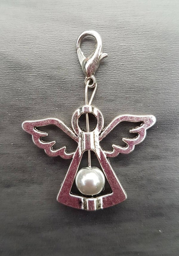 Wensengeltje / beschermengeltje zilverkleur met parel geel met slotje. Ook verkrijgbaar in wit, rood, paars, geel en groen.