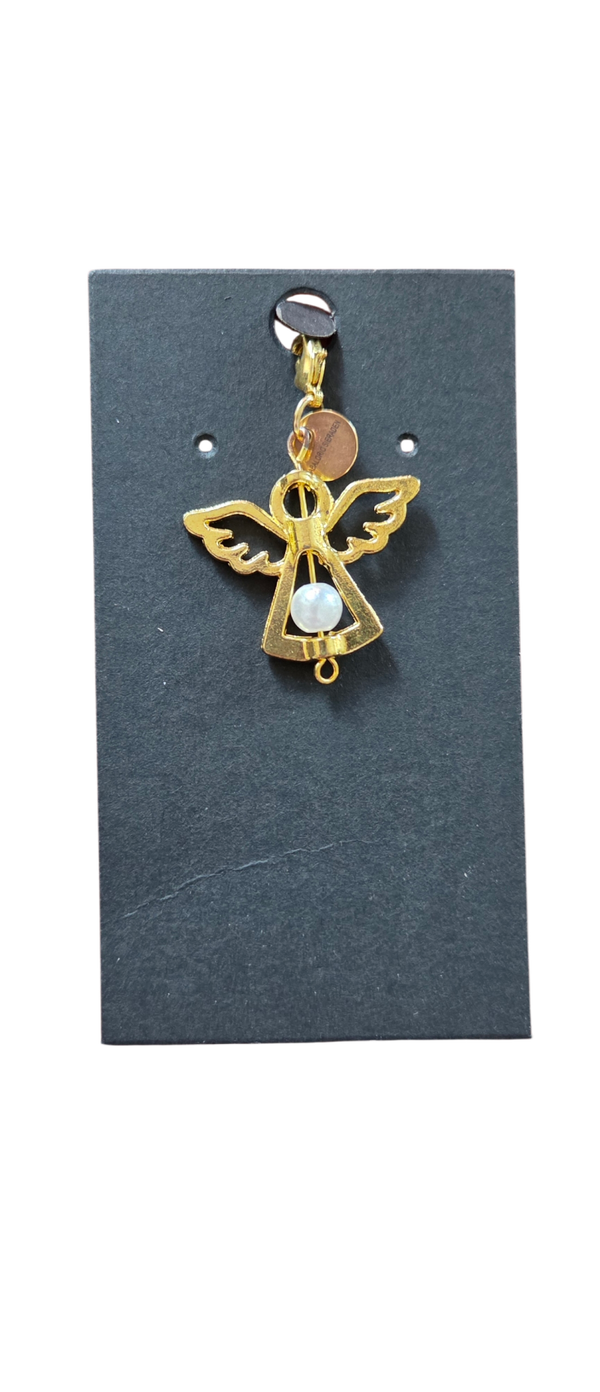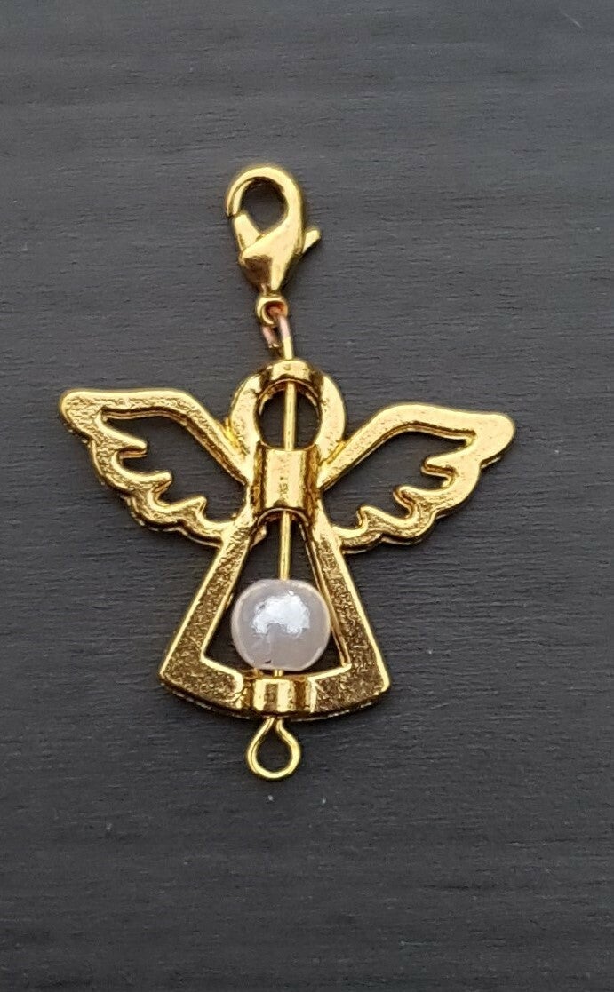 Wensengeltje / beschermengeltje goudkleur met parel en slotje. In wit, rood en groen
