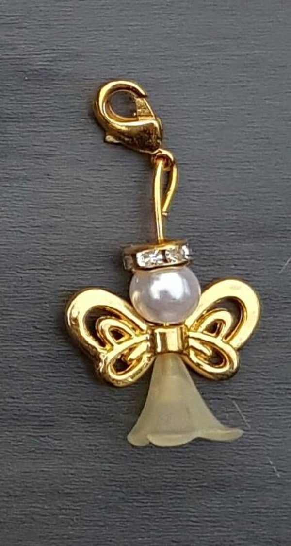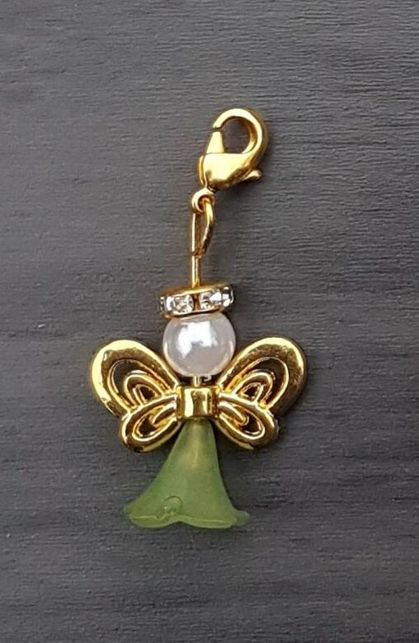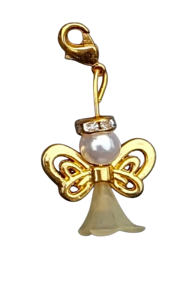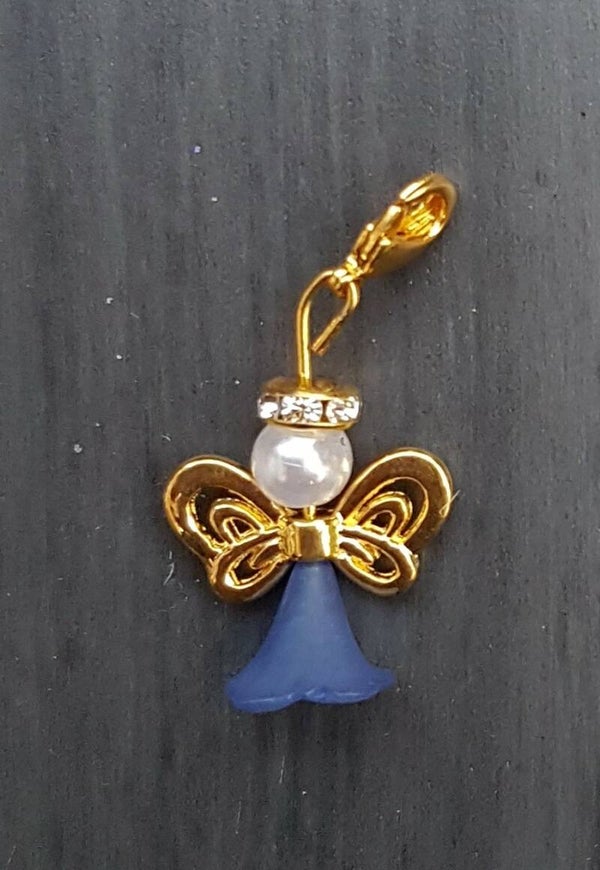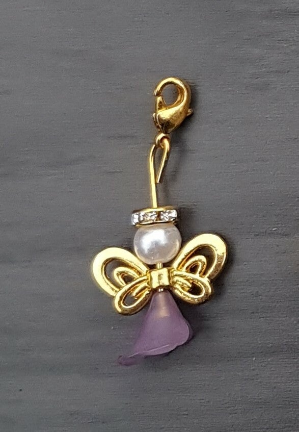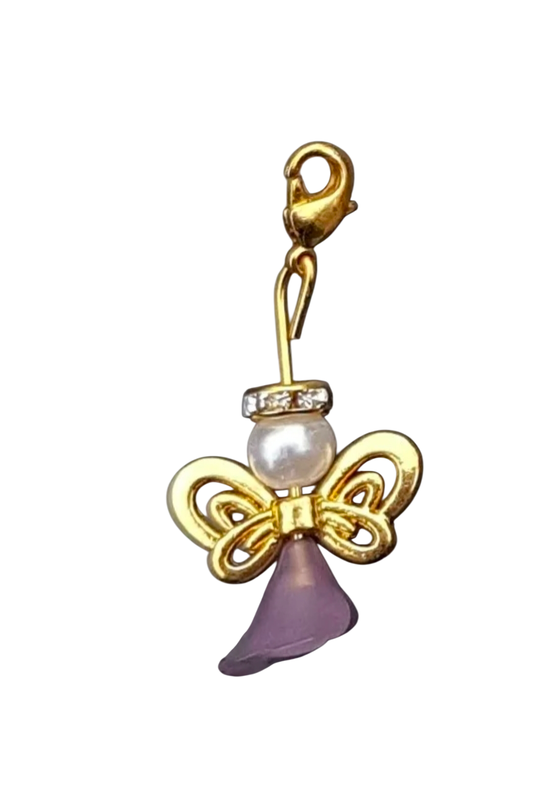 Wensengeltje / beschermengeltje goudkleur vlindervleugel met slotje en mat rokje. In de kleuren paars, groen, rood, blauw, geel verkrijgbaar