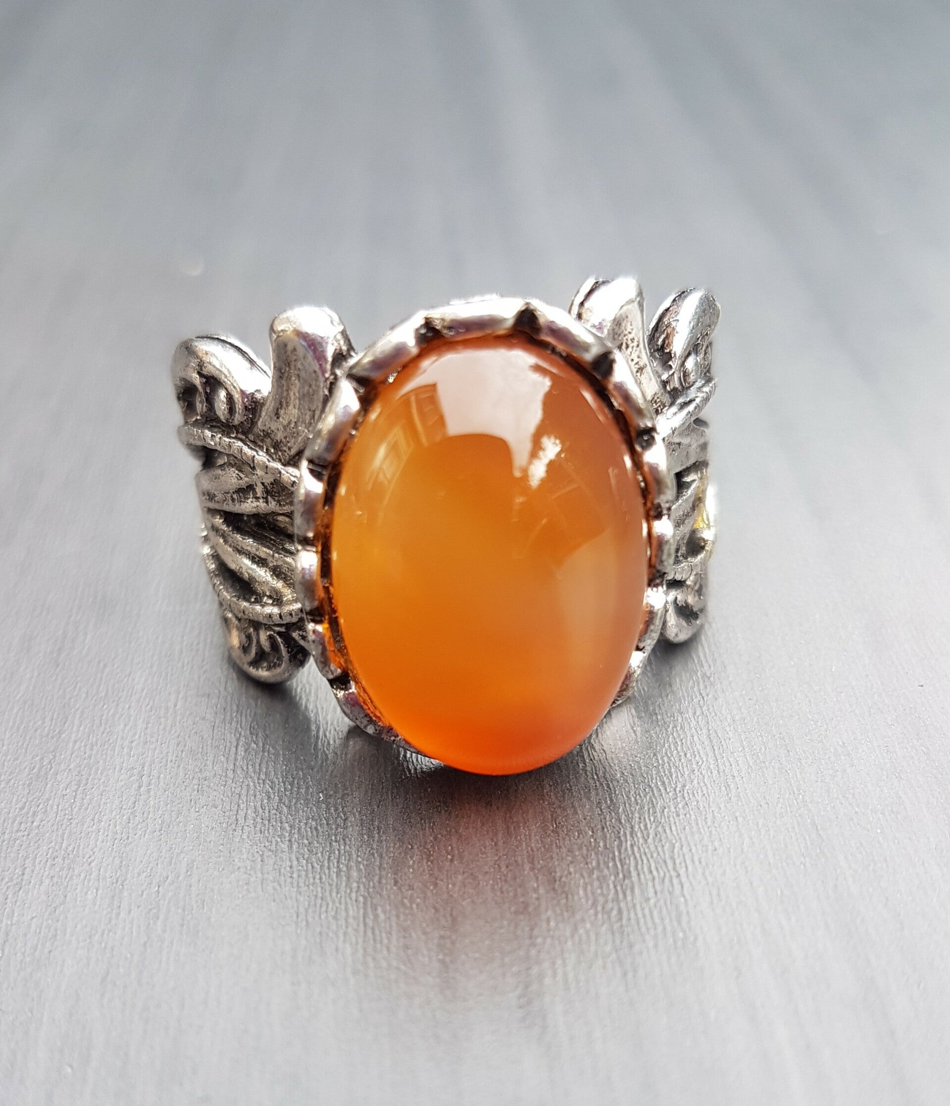Prachtige ring groot antiek zilverkleur met oranje agaat.