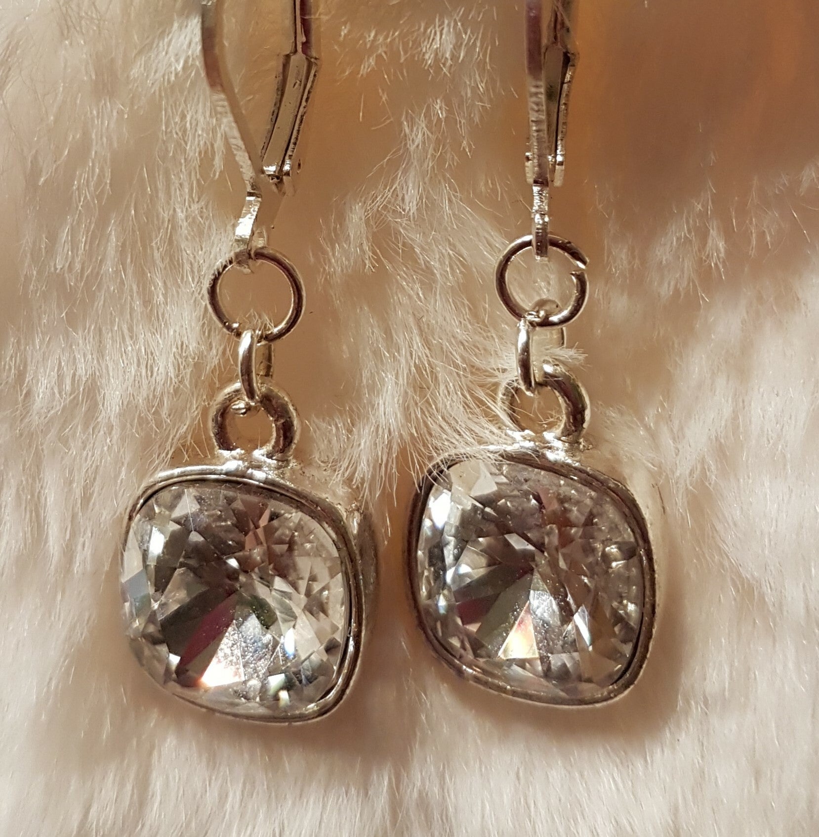 Design oorbellen swarovski wit doorschijnend met zilveren oorhanger limited edition. Steen 10 mm.