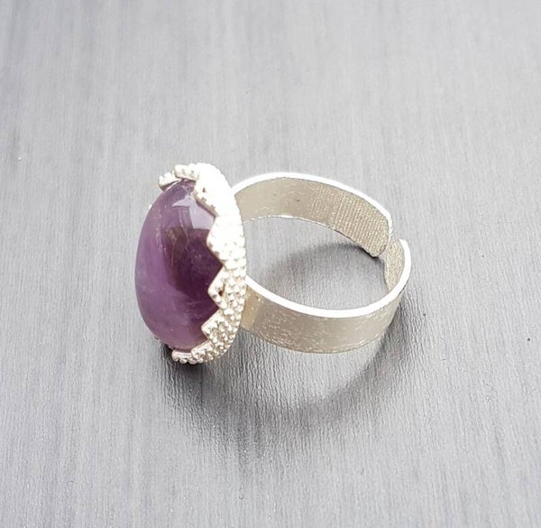 Prachtige ring verstelbaar wit zilverkleur met amethist.