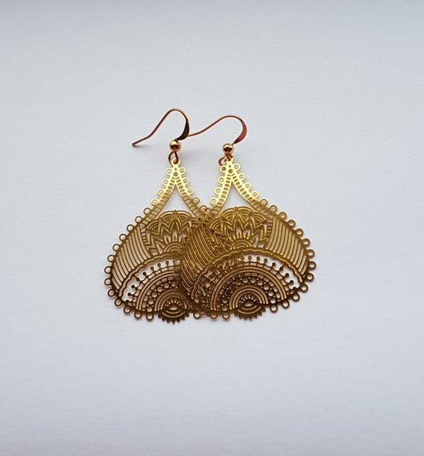 Prachtige Ibiza bohemian filigrain oorhangers goudkleur.