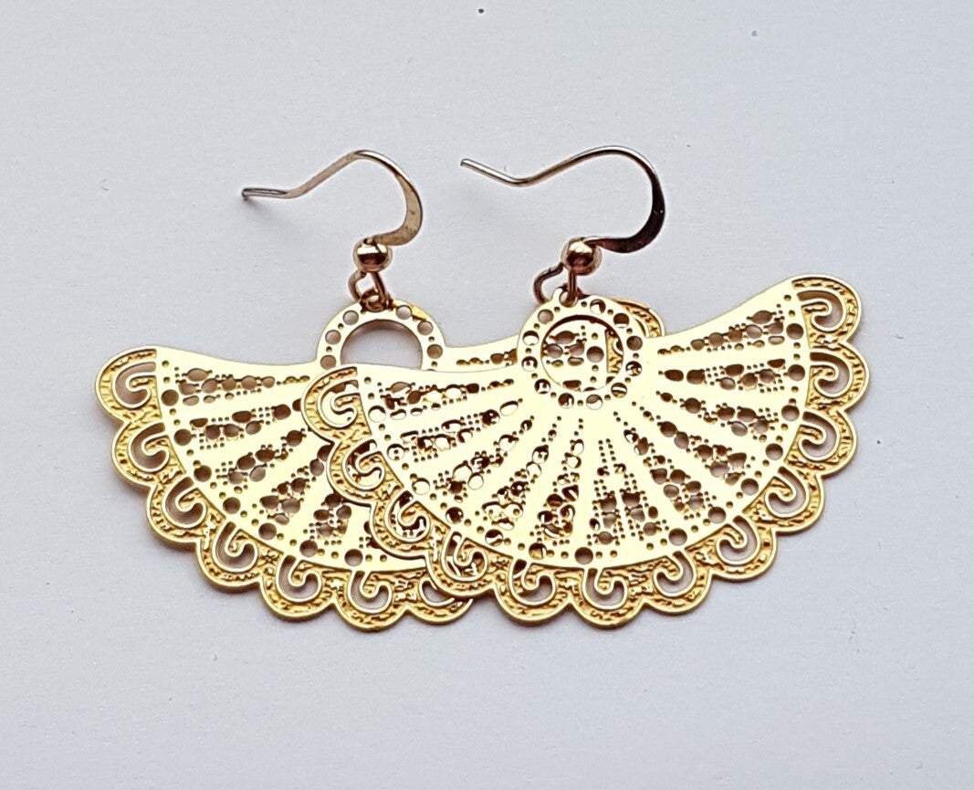 Prachtige Ibiza bohemian filigrain oorhangers goudkleur.