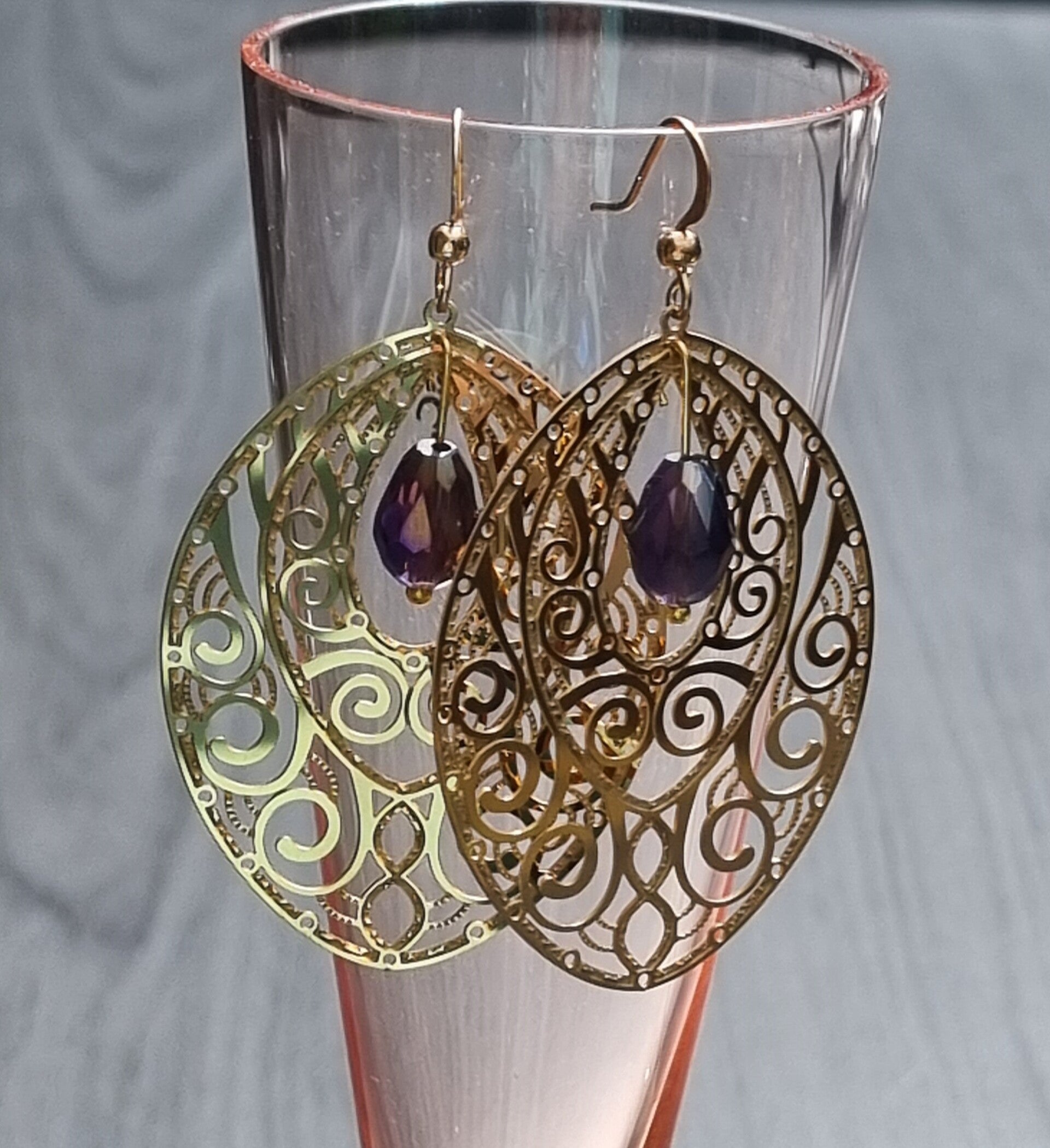 Ibiza bohemian filigrain oorhangers met paarse facetsteen
