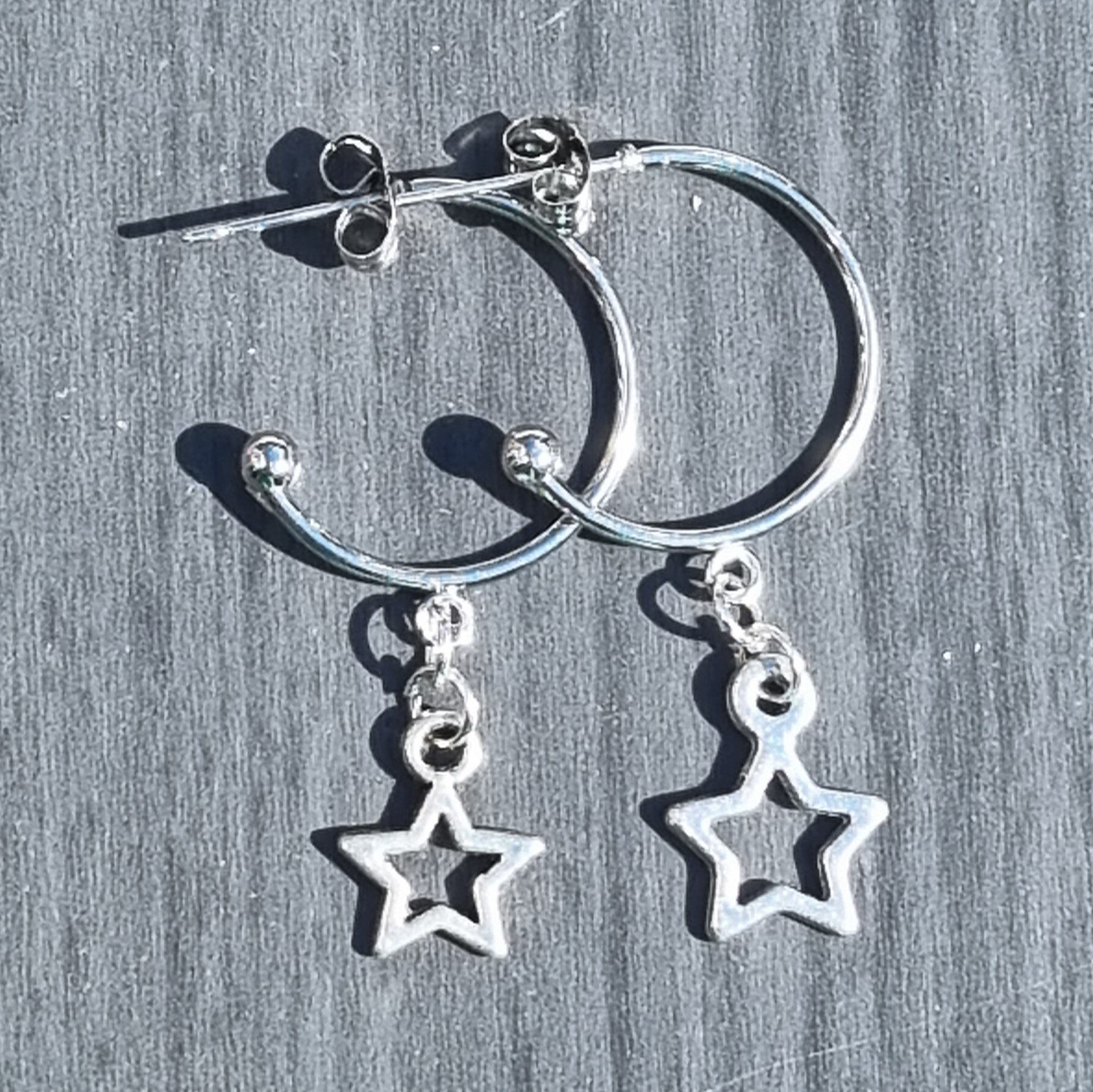 Prachtige minimalistische oorringen zilverkleur met open sterretjes.