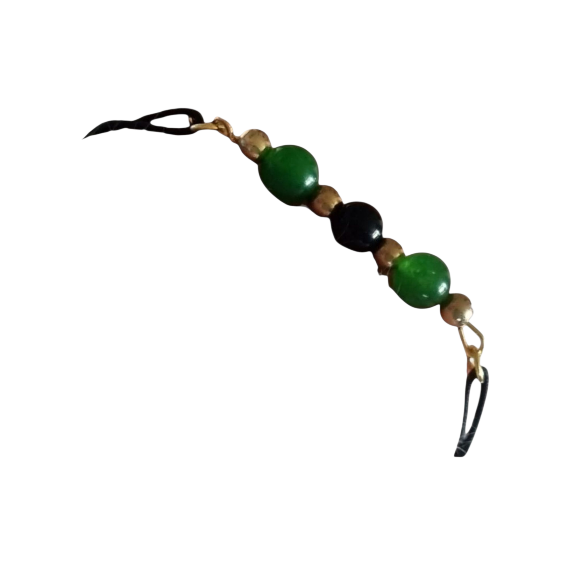 Armband op elastiek met jade en zwart agaat met goudkleurige kralen