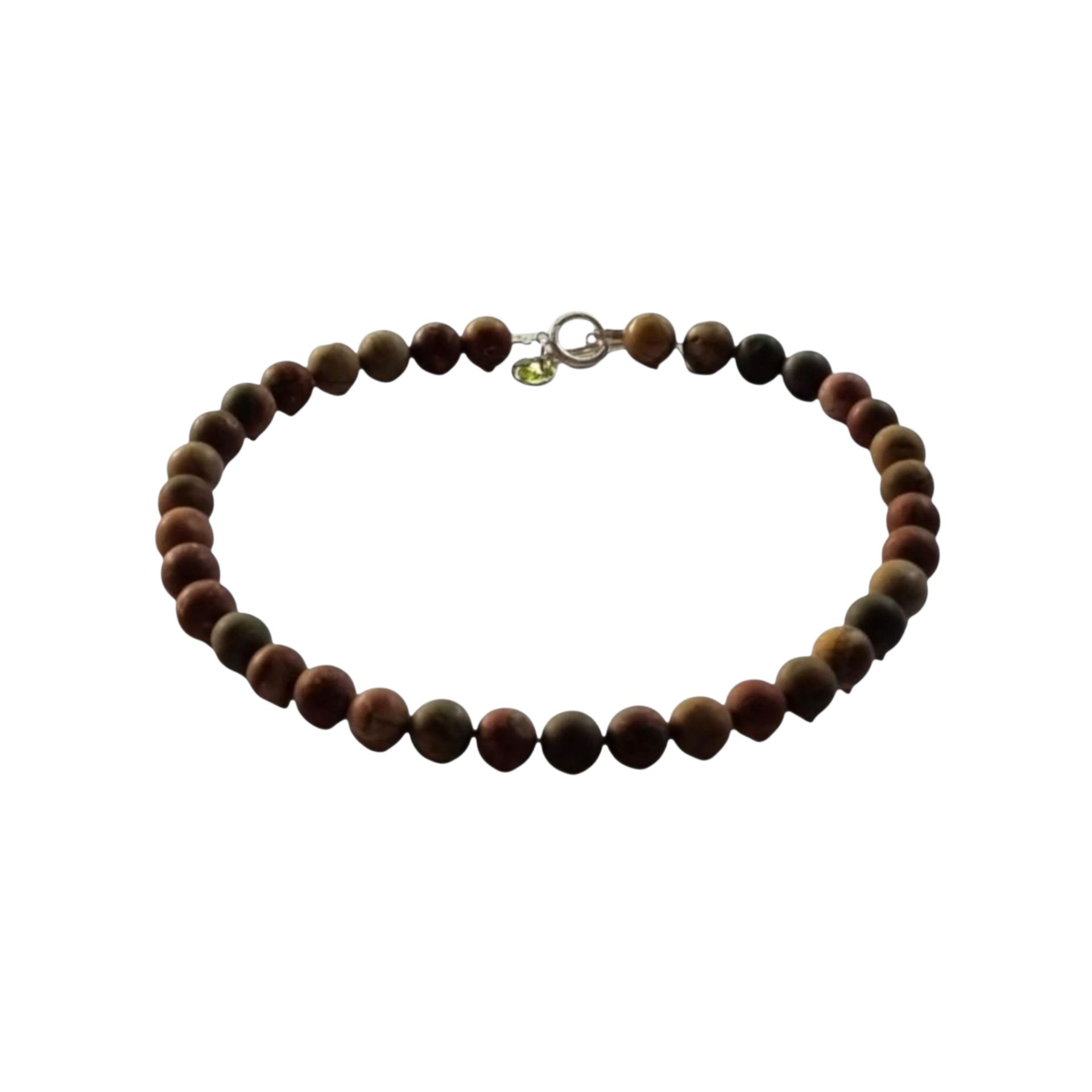 Jaspis set bestaande uit een ketting, oorbellen en een armband met zilveren sluiting