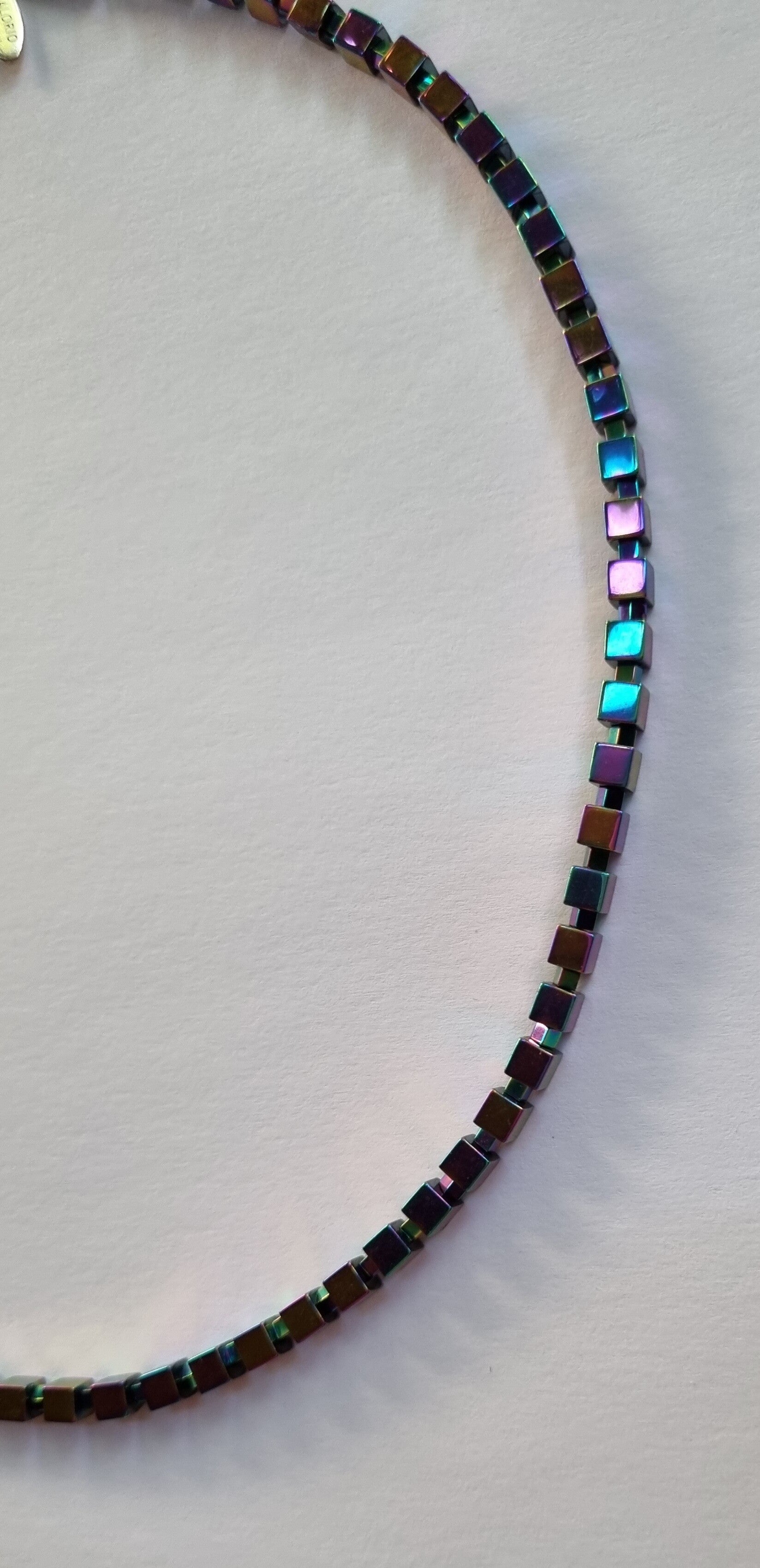Prachtige hematiet blokjes ketting 4 mm met zilveren sluiting.