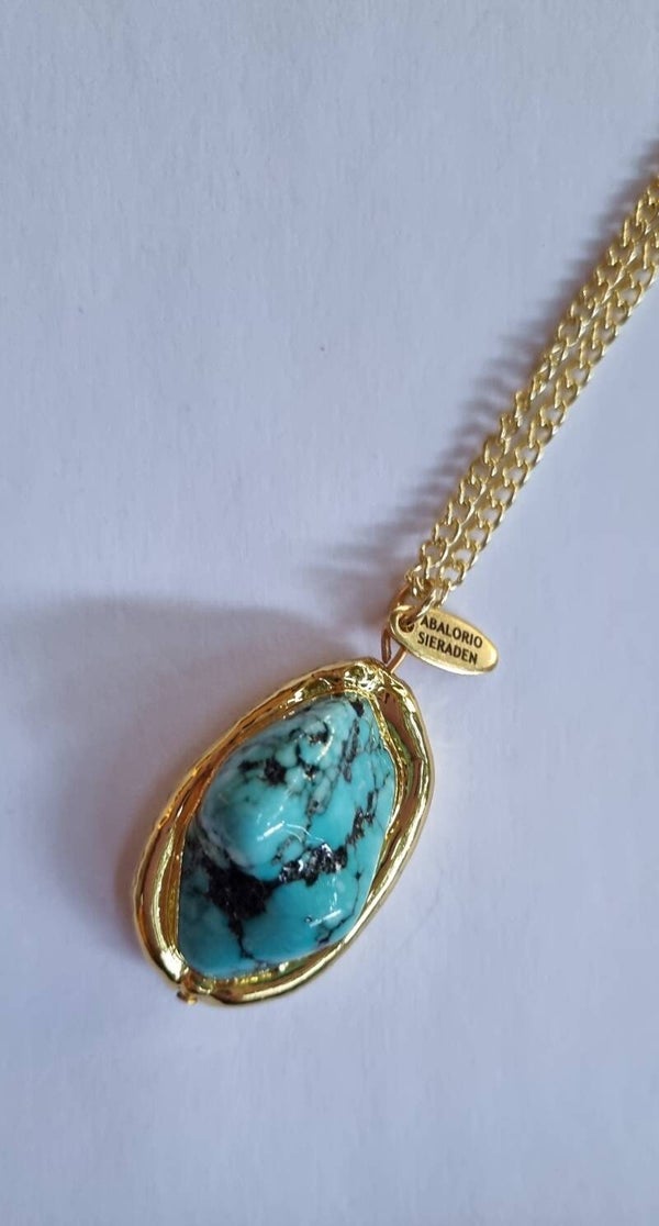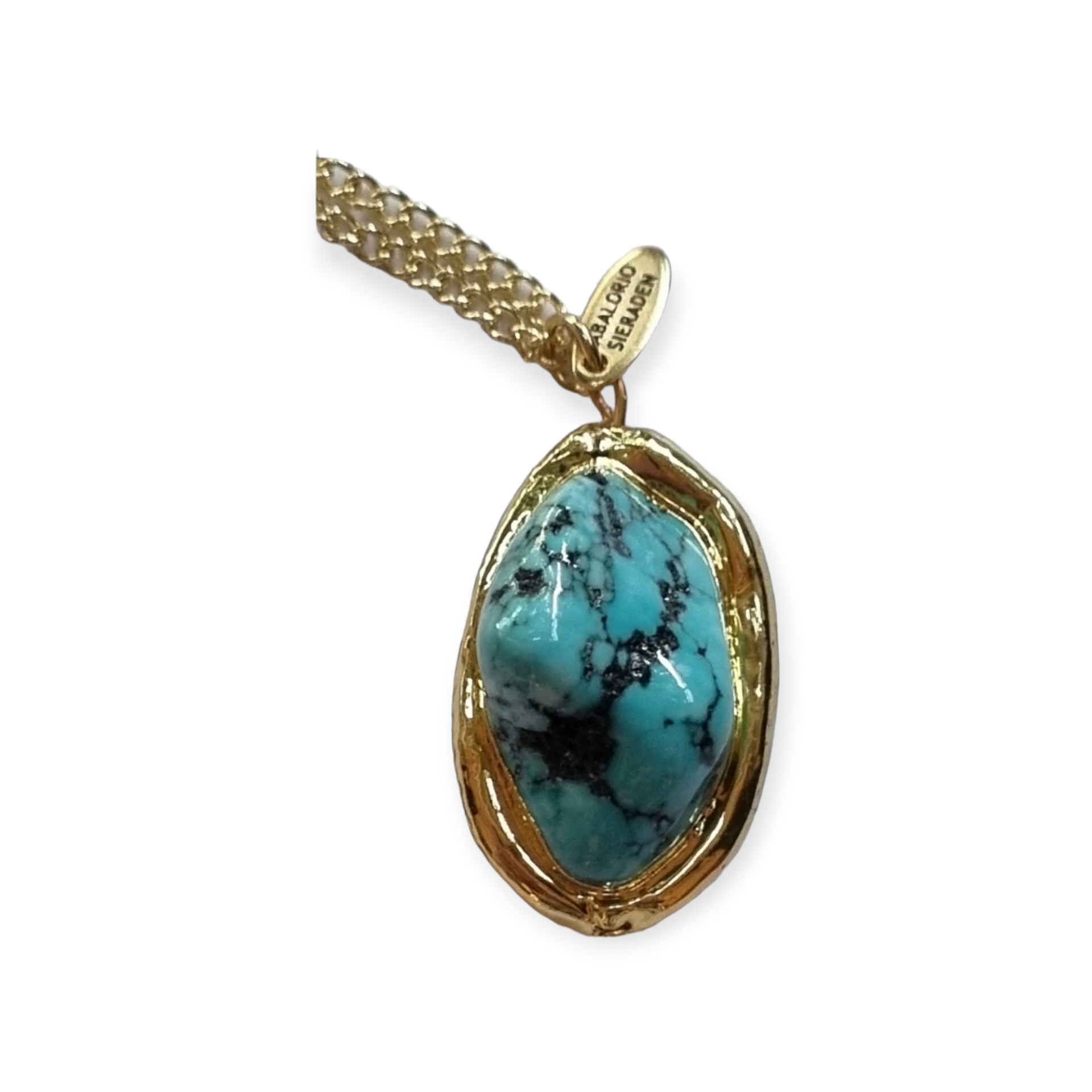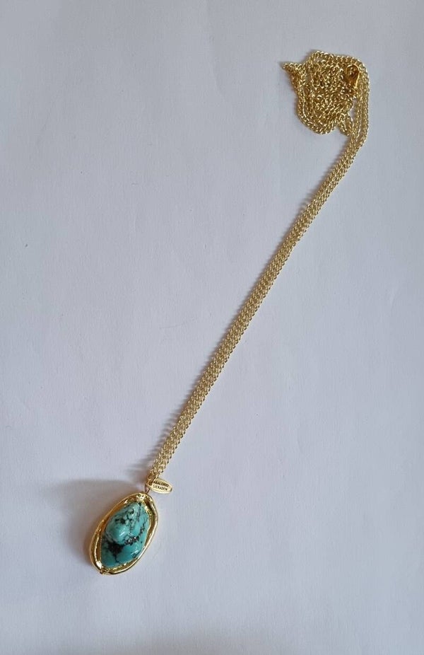 Prachtige vergulde hanger turkoois aan lange ketting 80 cm.