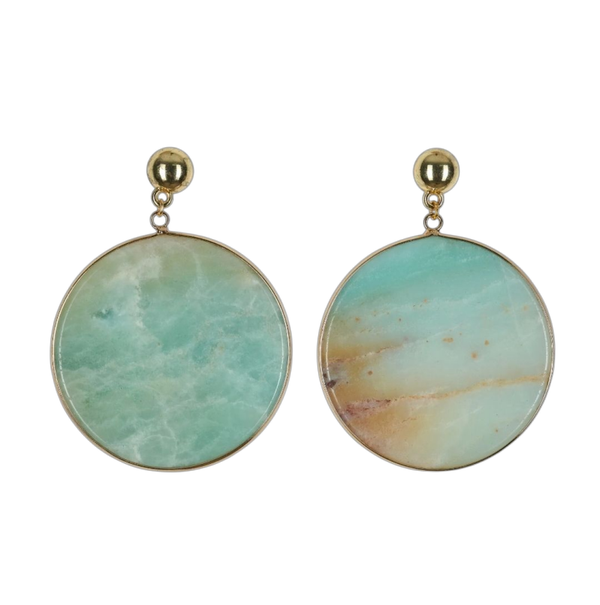 Prachtige amazoniet hanger rond aan goudkleurige ketting (90 cm = in te korten). Mooi te combineren met de oorbellen amazoniet.