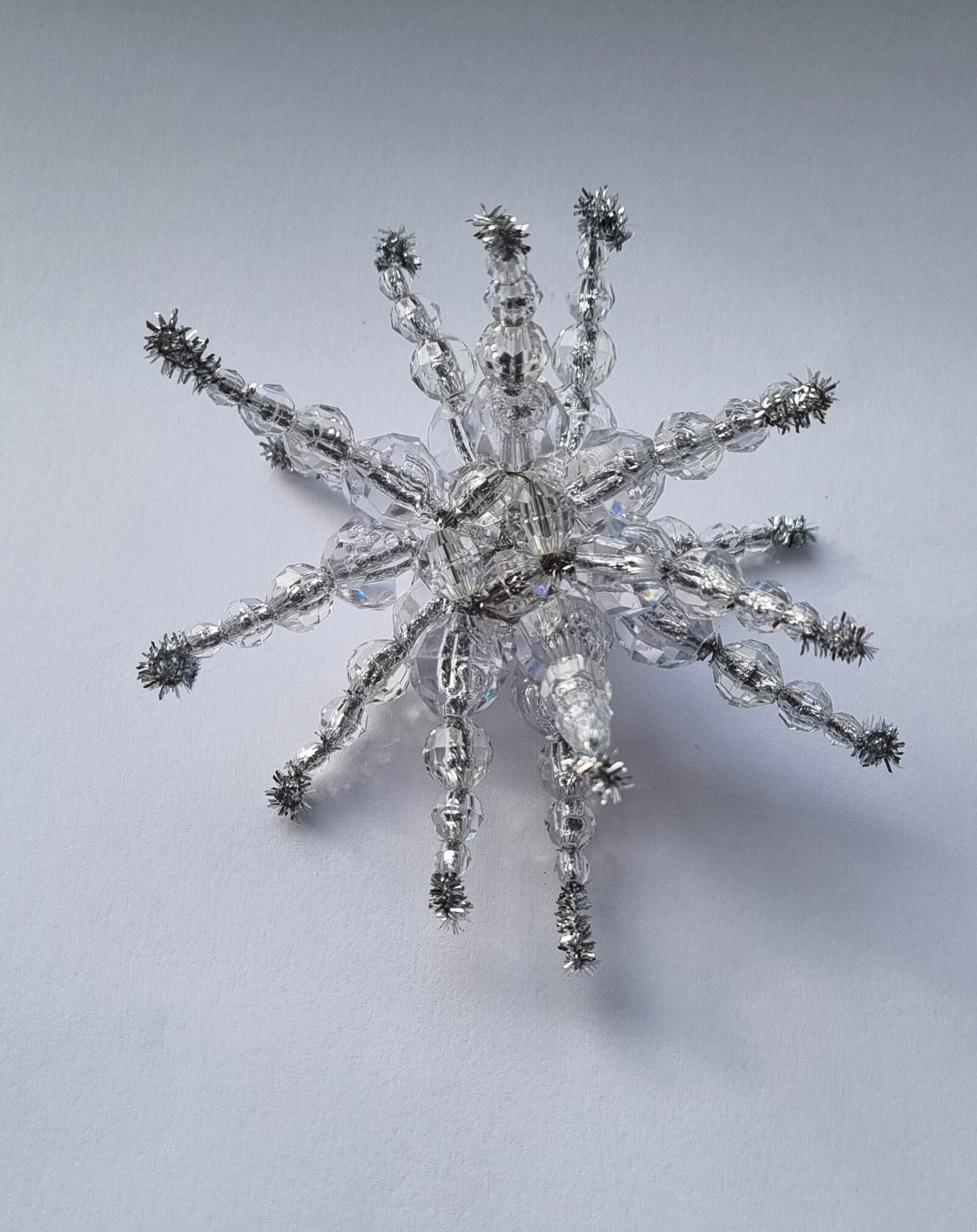 Prachtige kerstster 3 d met facetkralen. 10 cm. Handgemaakt.