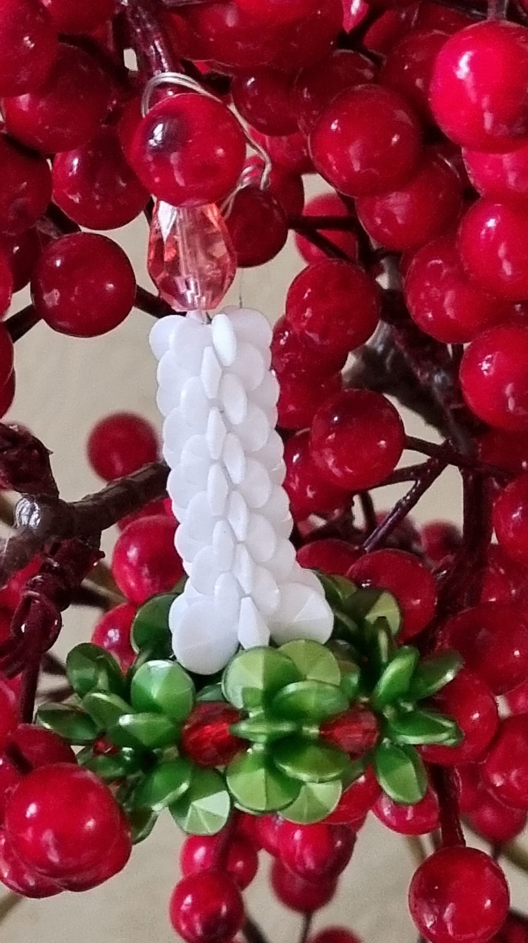 Kerstdecoratie kaarsje wit in kransje (handgemaakt)