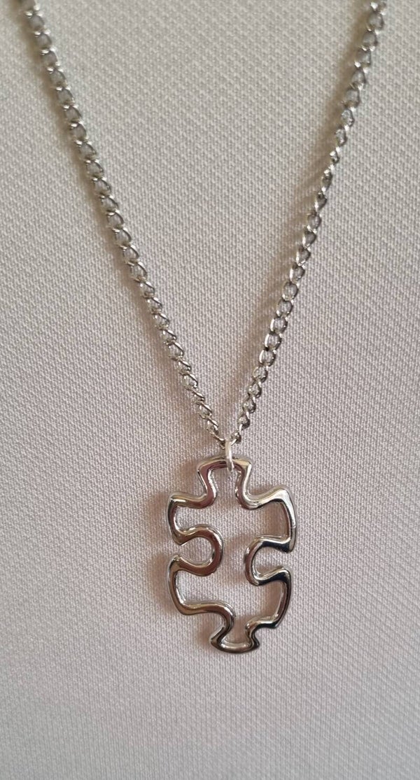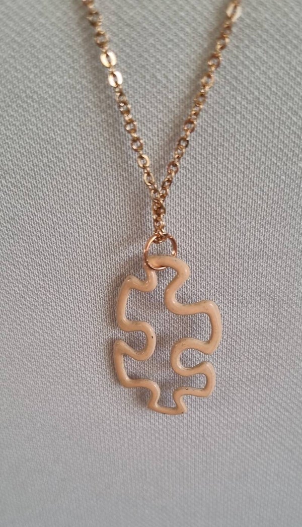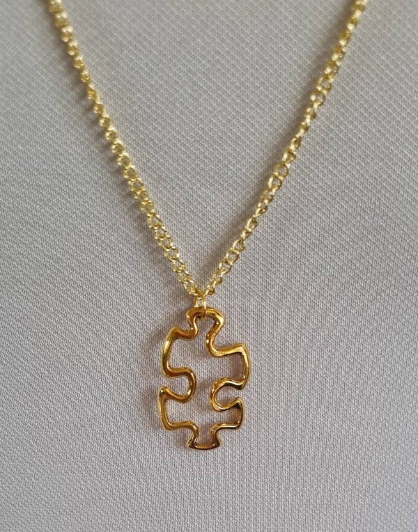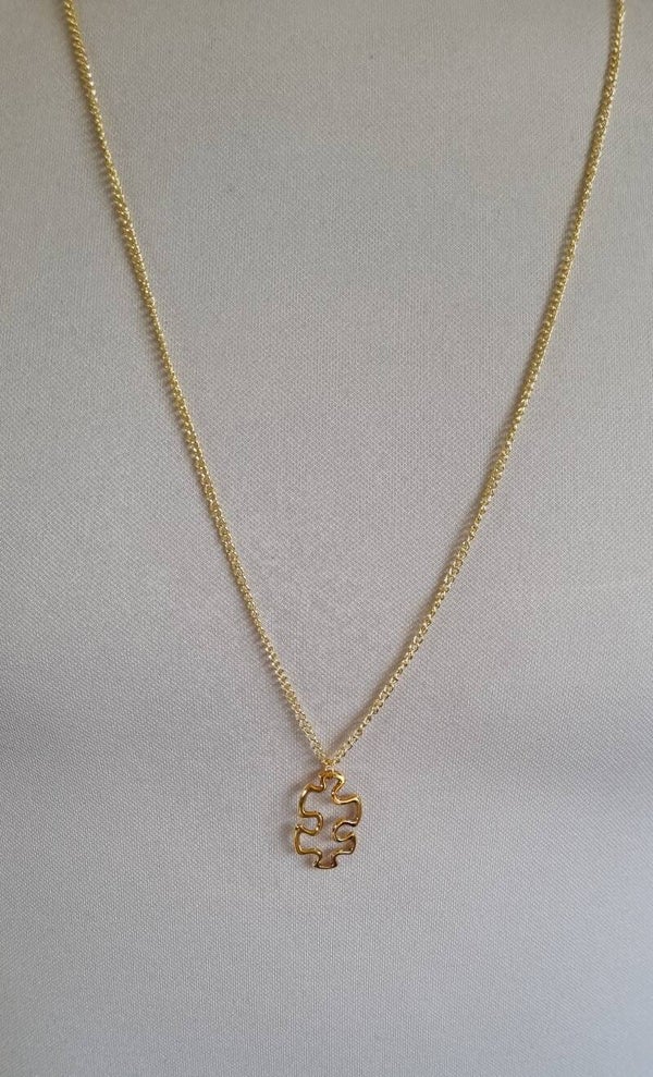 Leuke lange goudkleurige, rose gold of zilverkleurige ketting met puzzelstukje 30 x 18 mm. Een leuk kado voor de puzzelaar. Valentijnstip!