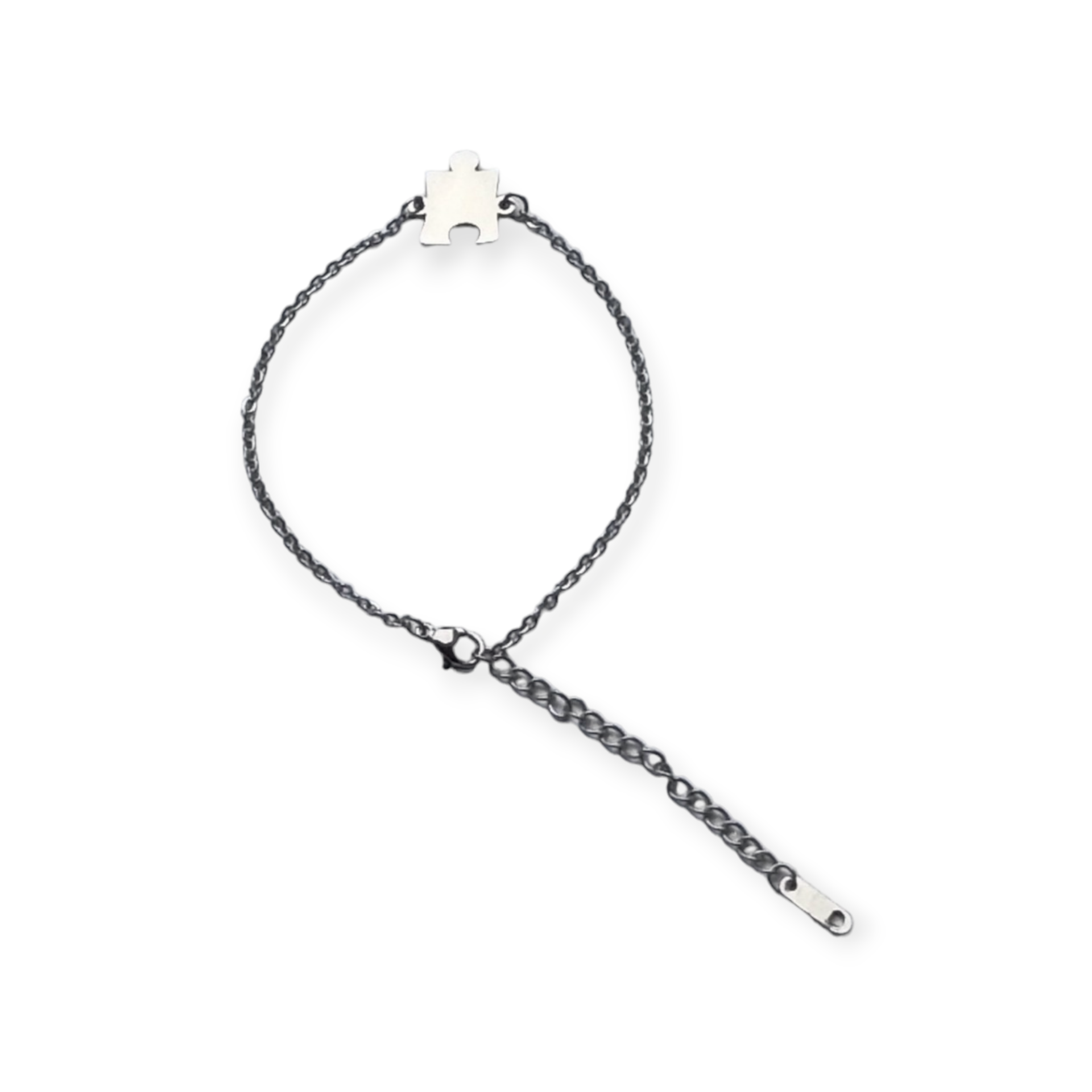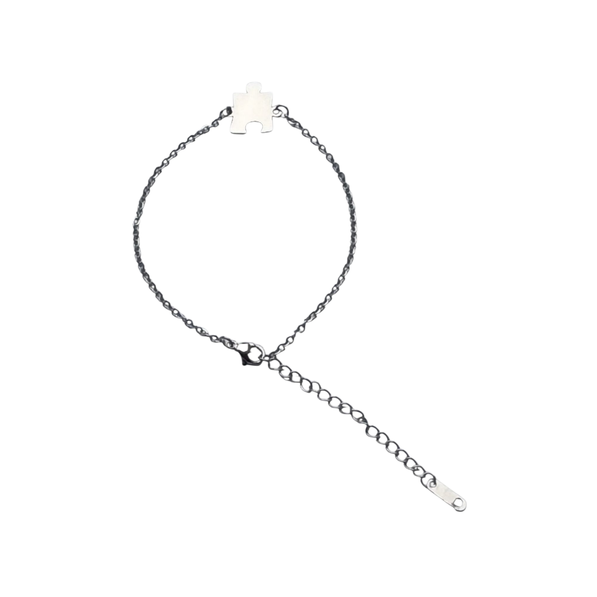 Prachtig fijn schakelarmbandje zilverkleur met verlengkettinkje met puzzelstukje (rvs)