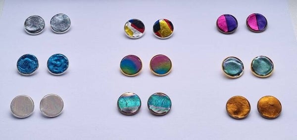 Oorclips goudkleur met Friendly Plastique Magique groen met paarse gloed